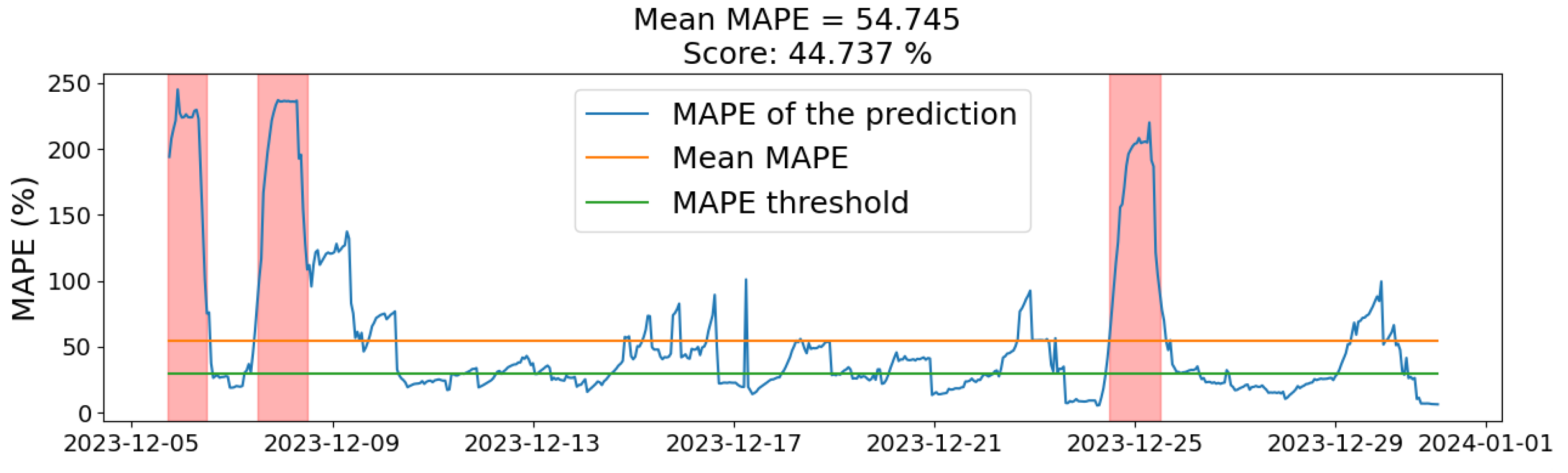 Finally, we will set the target quantitative score values to align with the accuracy benchmarks to be achieved. This approach ensures that the model is sufficiently robust and effective in consistently meeting the desired MAPE and MAE thresholds over extended periods. These values are valid for all types of consumers.