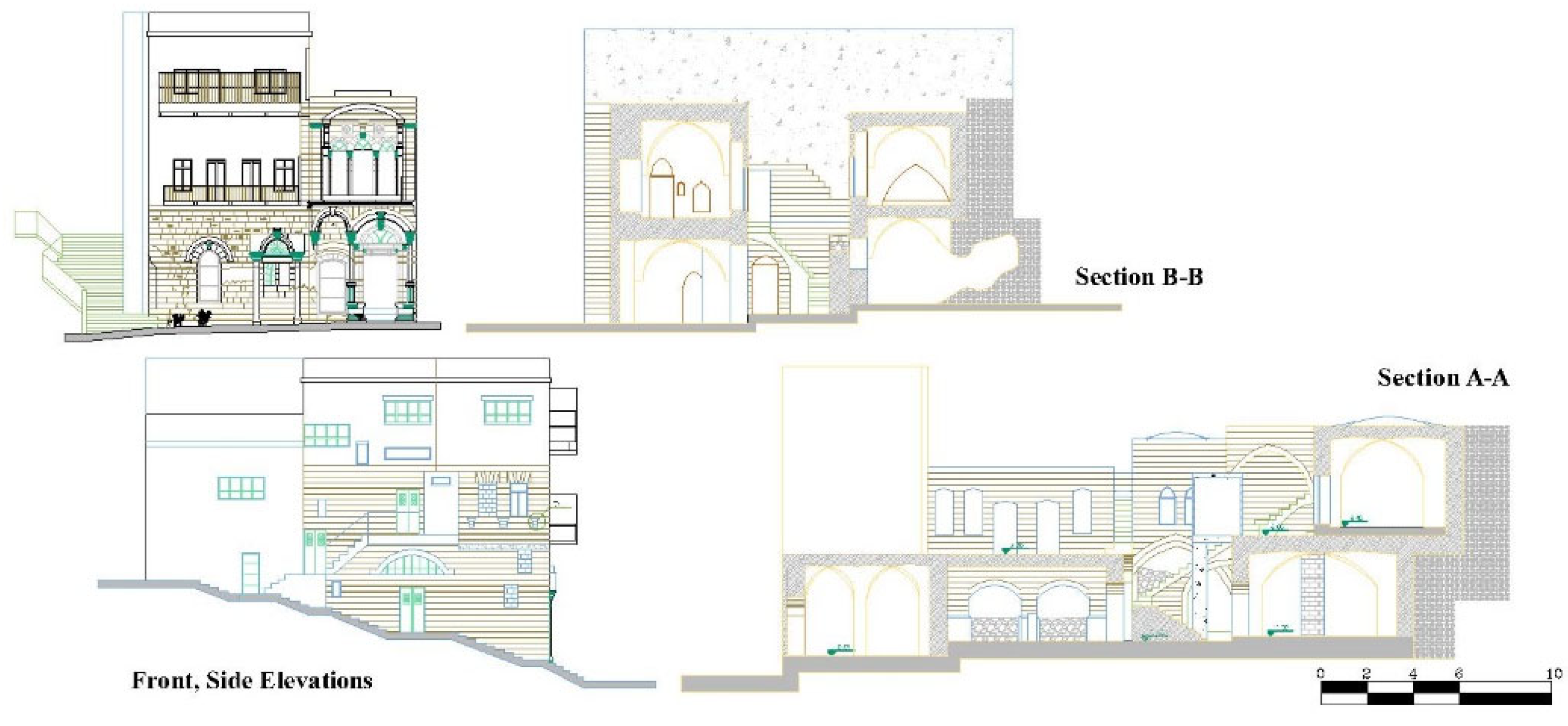 52]. The case study is a heritage residential house built around 1860–1900 in the historic center and is known locally as the Khader center (previously the Jaghbeer family residence), shown in