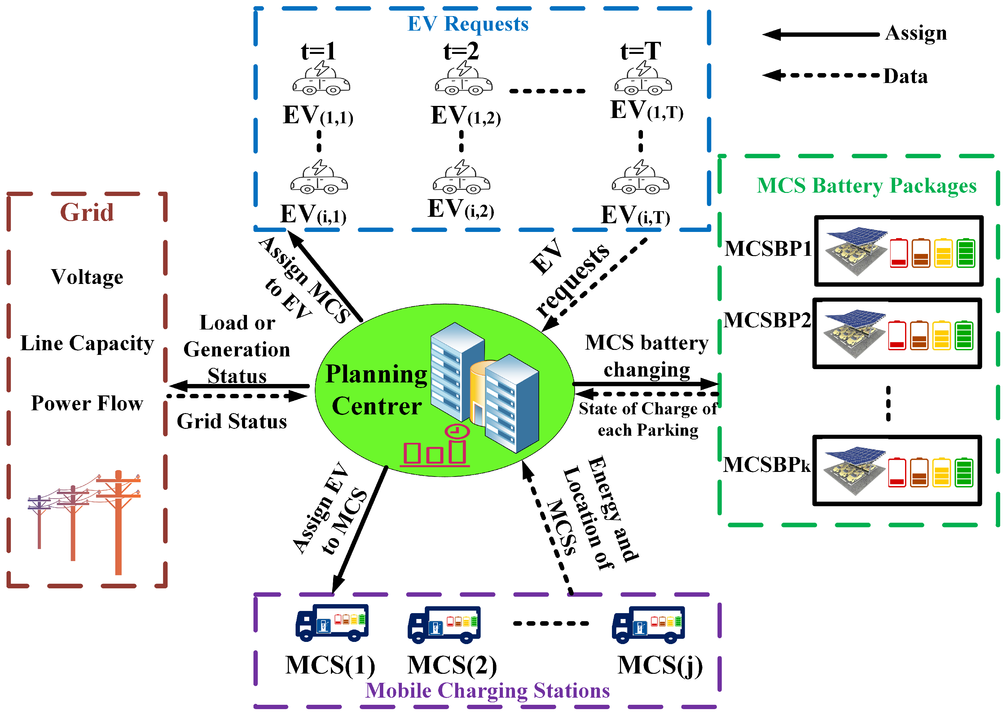 3.1. Optimizing the Distribution of MCSs to EV Charging Requests