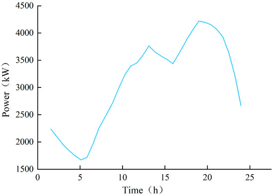 This paper conducts a case study based on the modified IEEE 33-bus distribution network [38], with its topological structure shown in Figure 3. The voltage level is 12.66 kV, and the typical daily load curve is shown in Figure 4. Bus 1 is a thermal power generator, serving as a PV bus and operating under droop control to maintain system voltage and frequency stability. In the simulation, the droop coefficient of the thermal power generator is set to 5%. Buses 2–33 include new energy stations, energy storage facilities, and load units, and are all treated as PQ buses.