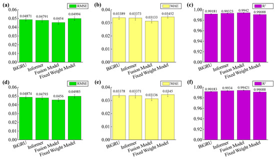 The fusion model hyperparameters are shown in Table 3. The hyperparameters for the BiGRU and Informer networks are shown in Table 4 and Table 5. All the experiments were conducted using Python 3.9, PyTorch 2.0, and TorchVision 0.15.0. Computations were performed on a computer equipped with an NVIDIA GeForce RTX 4070 Ti GPU and an Intel Core i5-12400F CPU. Divide 20% of the data within the training set into a validation set. The training protocol employed early stopping based on validation set loss with patience = 10.