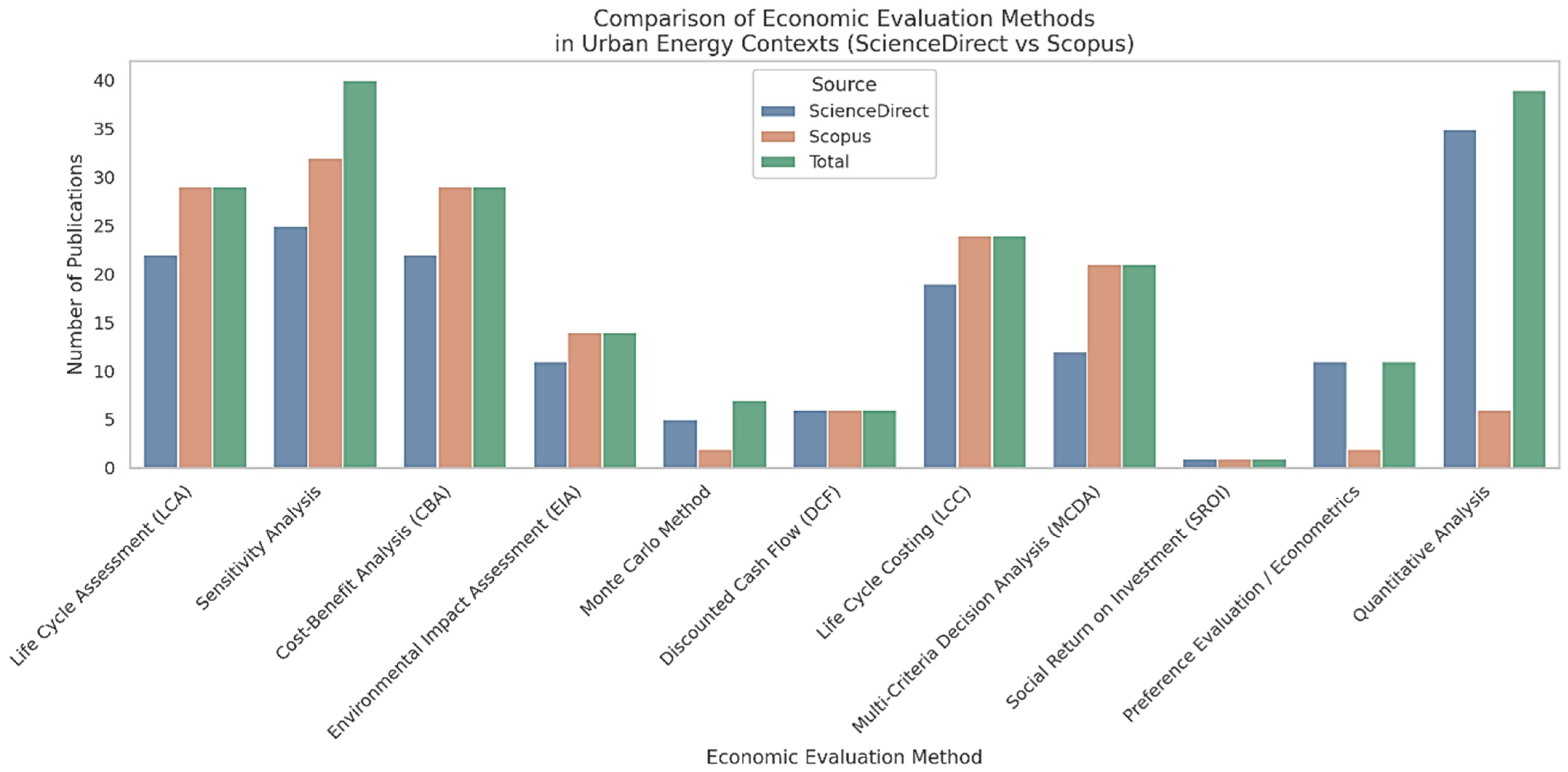 - Economic Evaluation Methods—Identified the specific tools and models used to conduct economic assessments, such as Cost–Benefit Analysis (CBA), Life Cycle Costing (LCC), Multi-Criteria Analysis (MCA), and others.