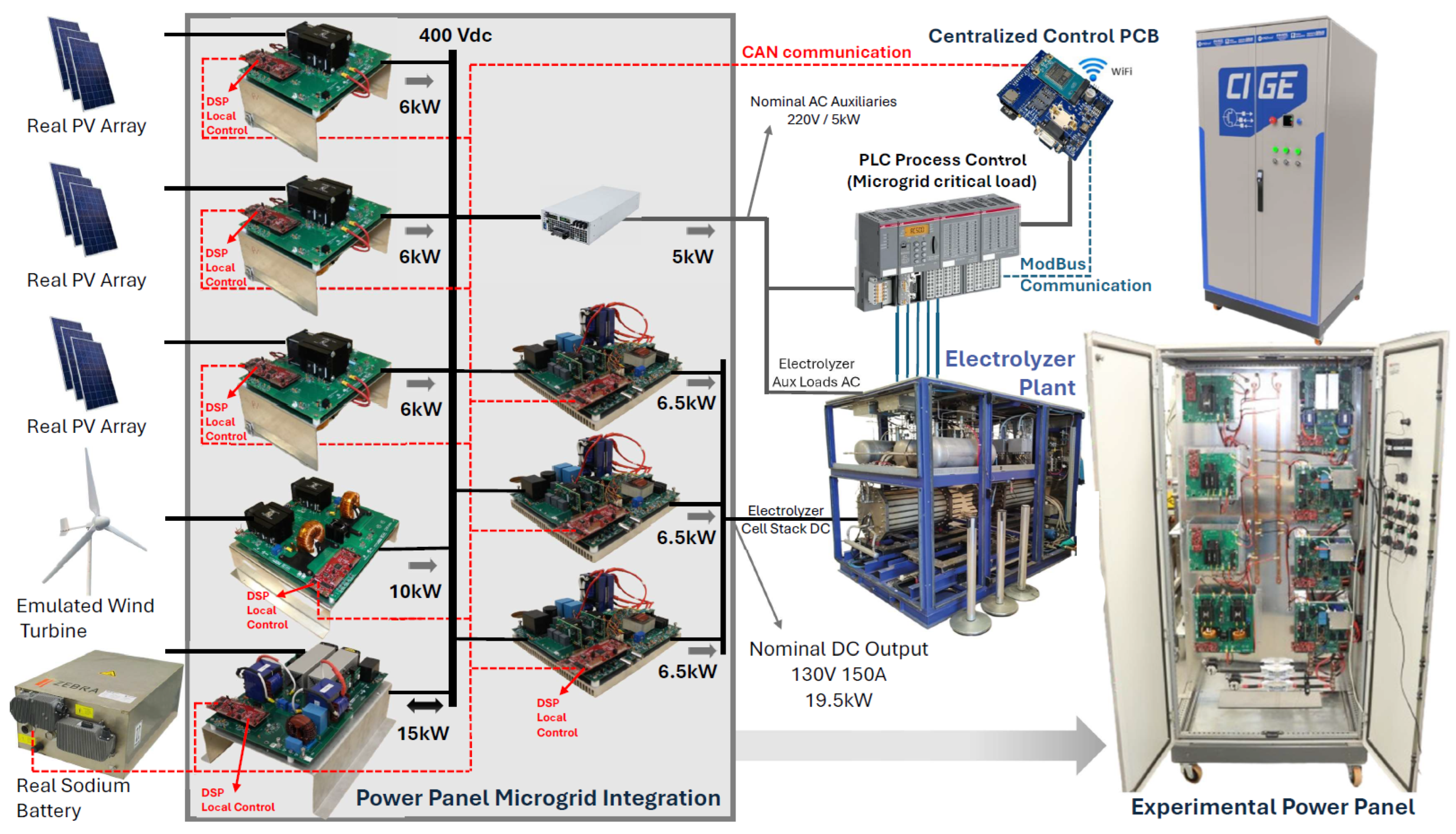 Efficiency improvement is experimentally verified in hydrogen production with the proposed DC microgrid (up to 26%) when compared to legacy thyristor-based systems.