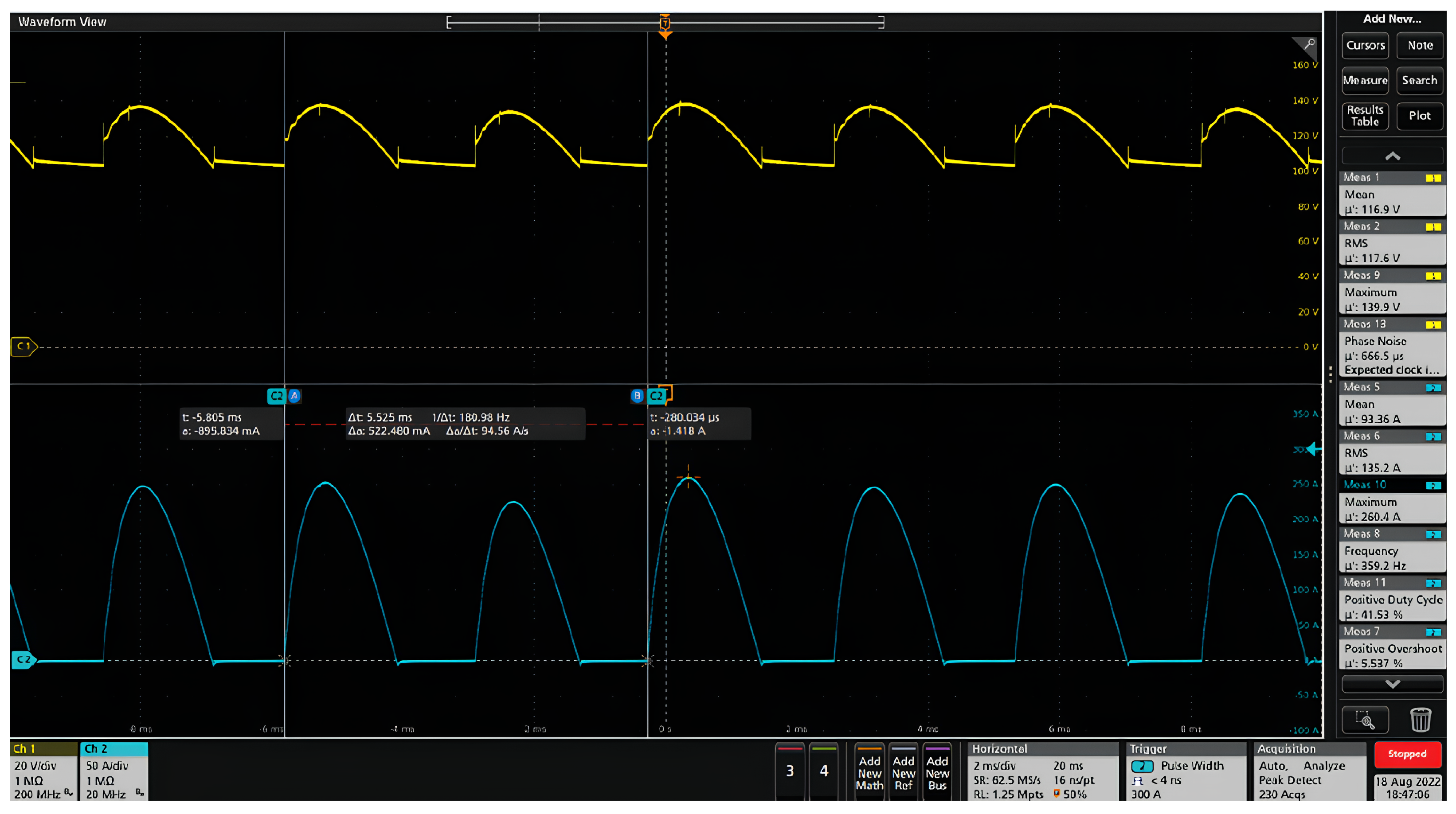 Figure 12 shows the voltage and current waveforms of the electrolyzer (