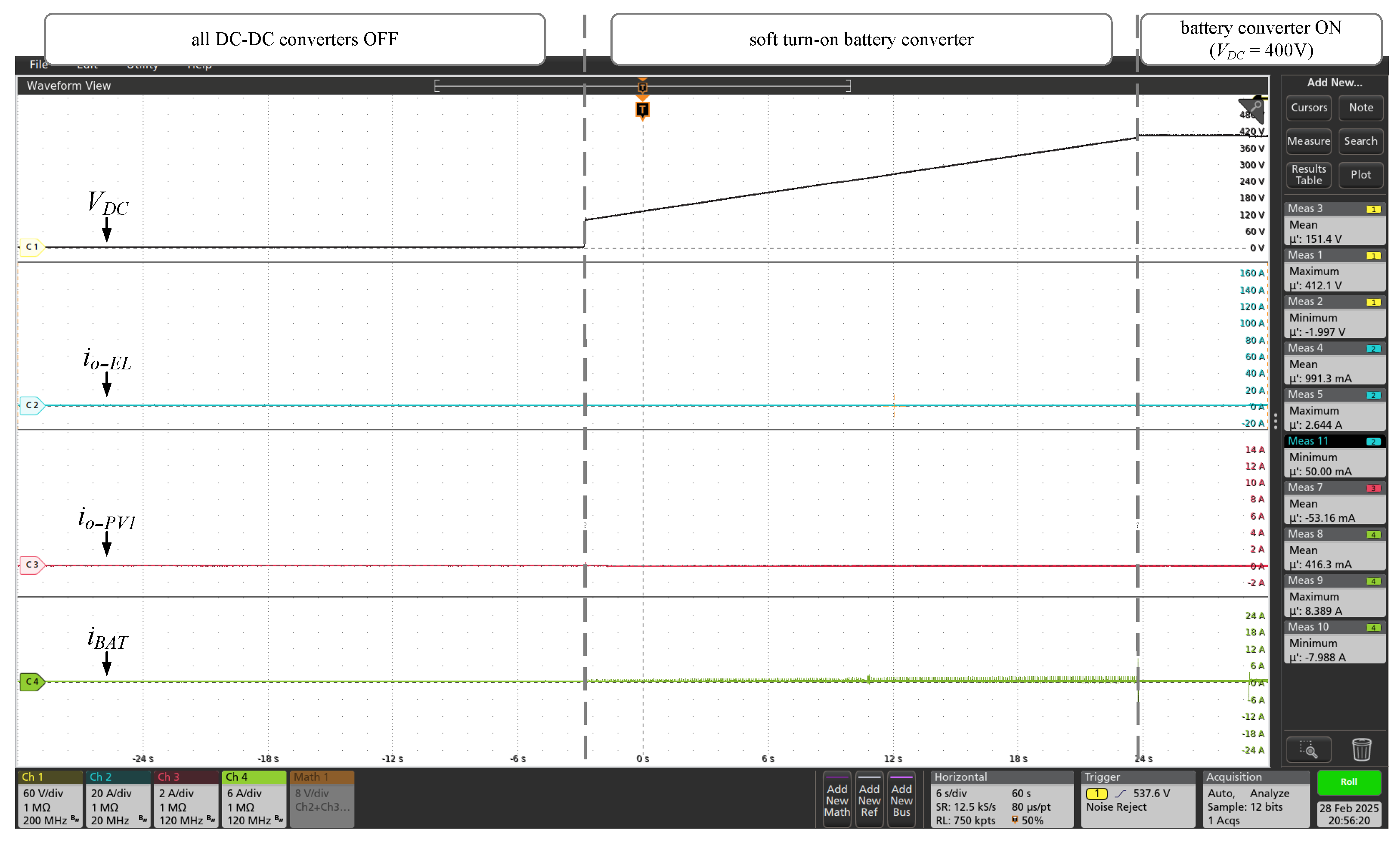 Figure 18. Initially, the battery converter starts with a soft ramp until reaching the nominal voltage of the central DC bus (