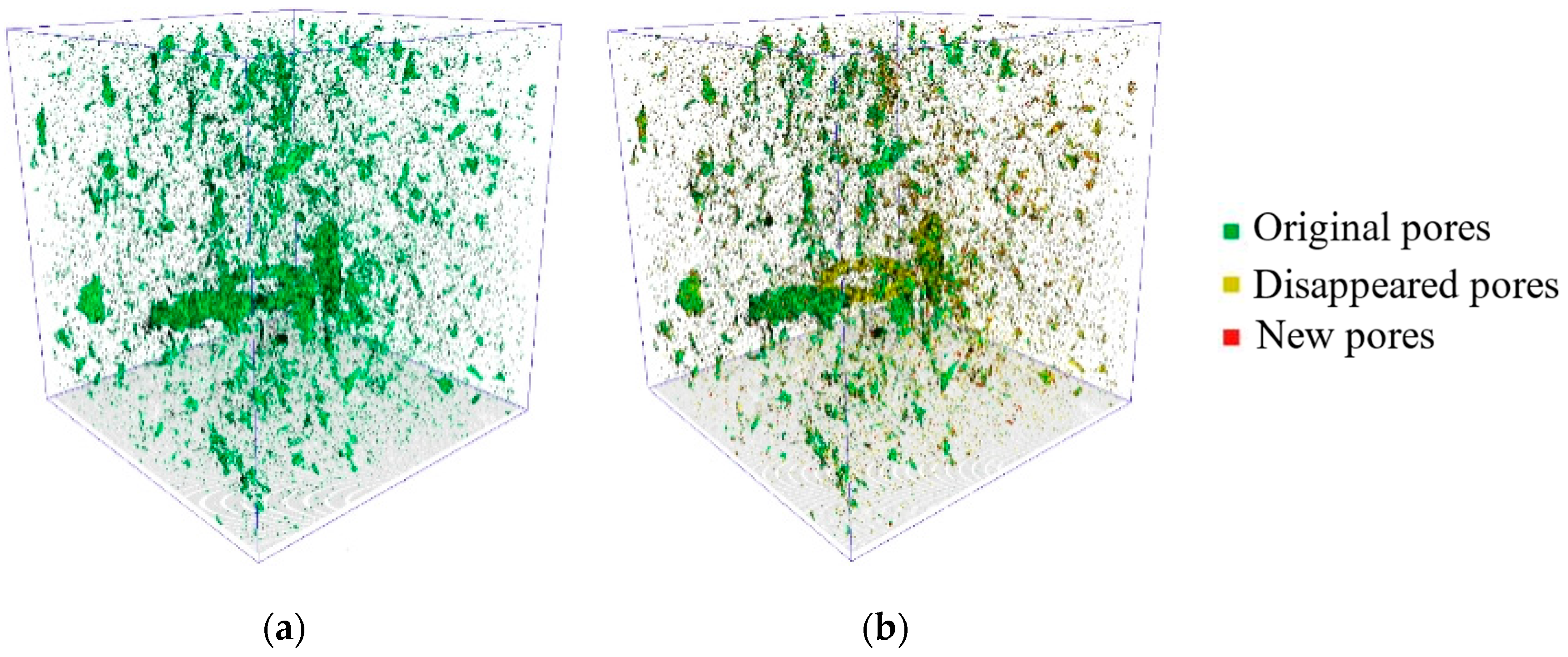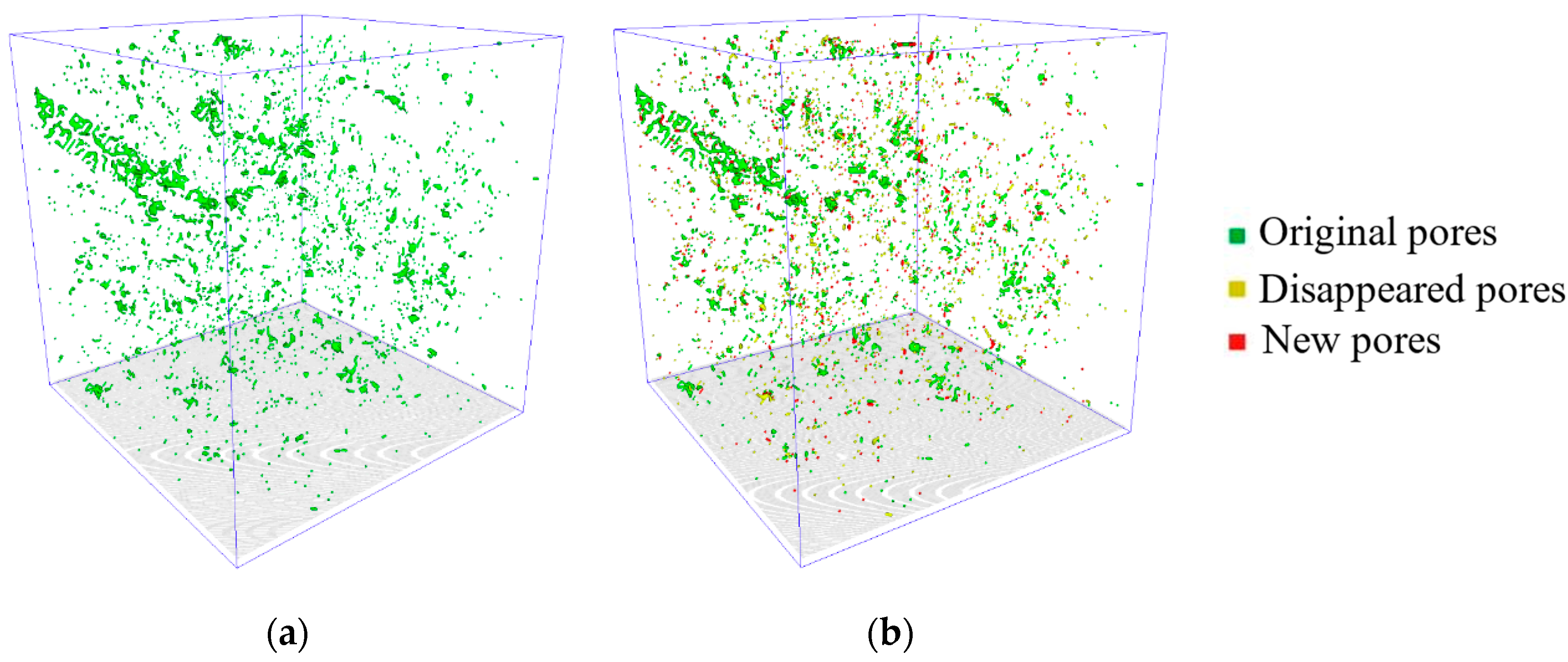 3.2. Dynamic Evolution Characteristics of Pore Structure
