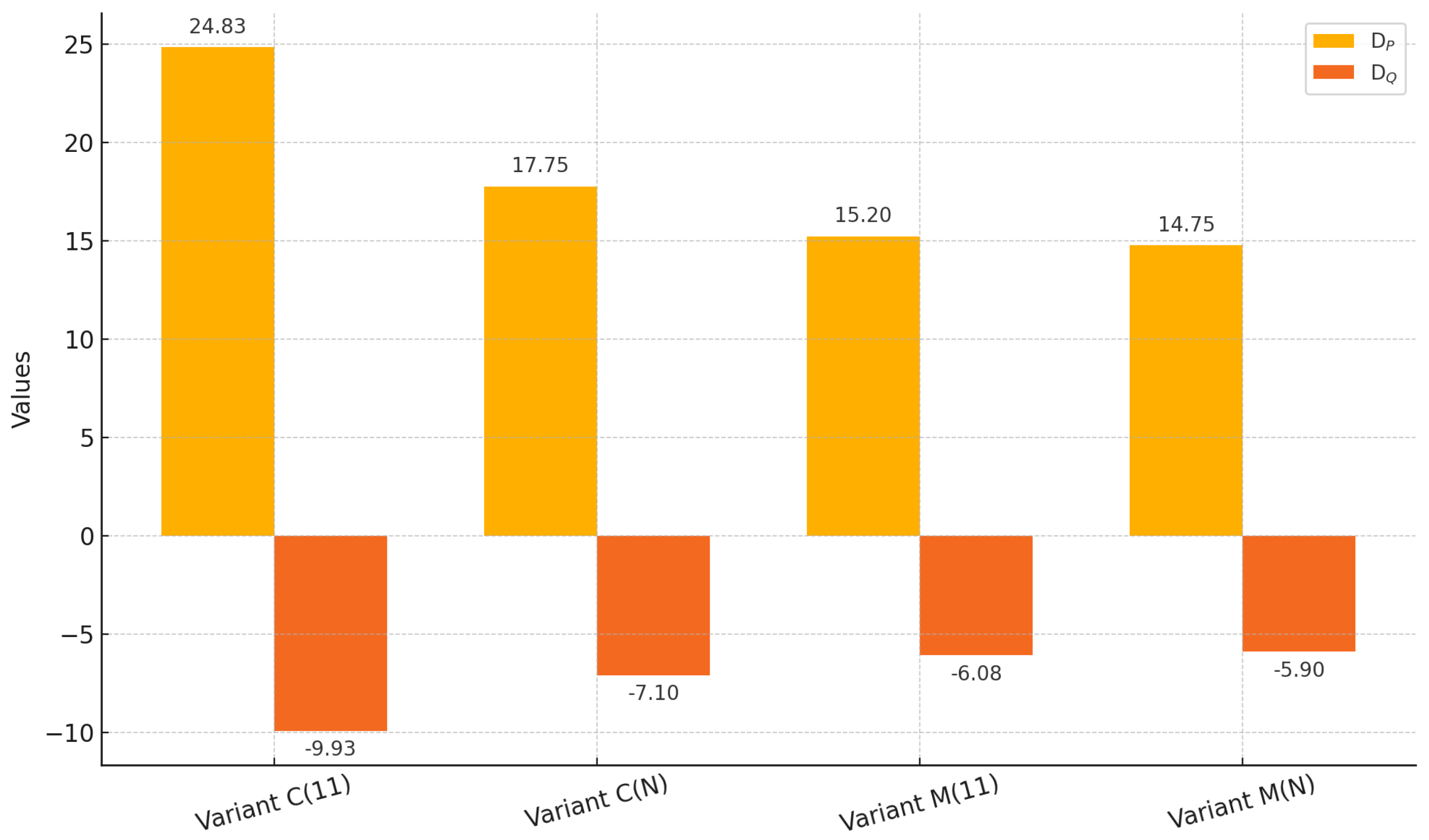 Determined active and reactive power density indicators: Variant C(1:1), variant C(N), variant M(1:1), and variant M(N). Source: author’s own study.