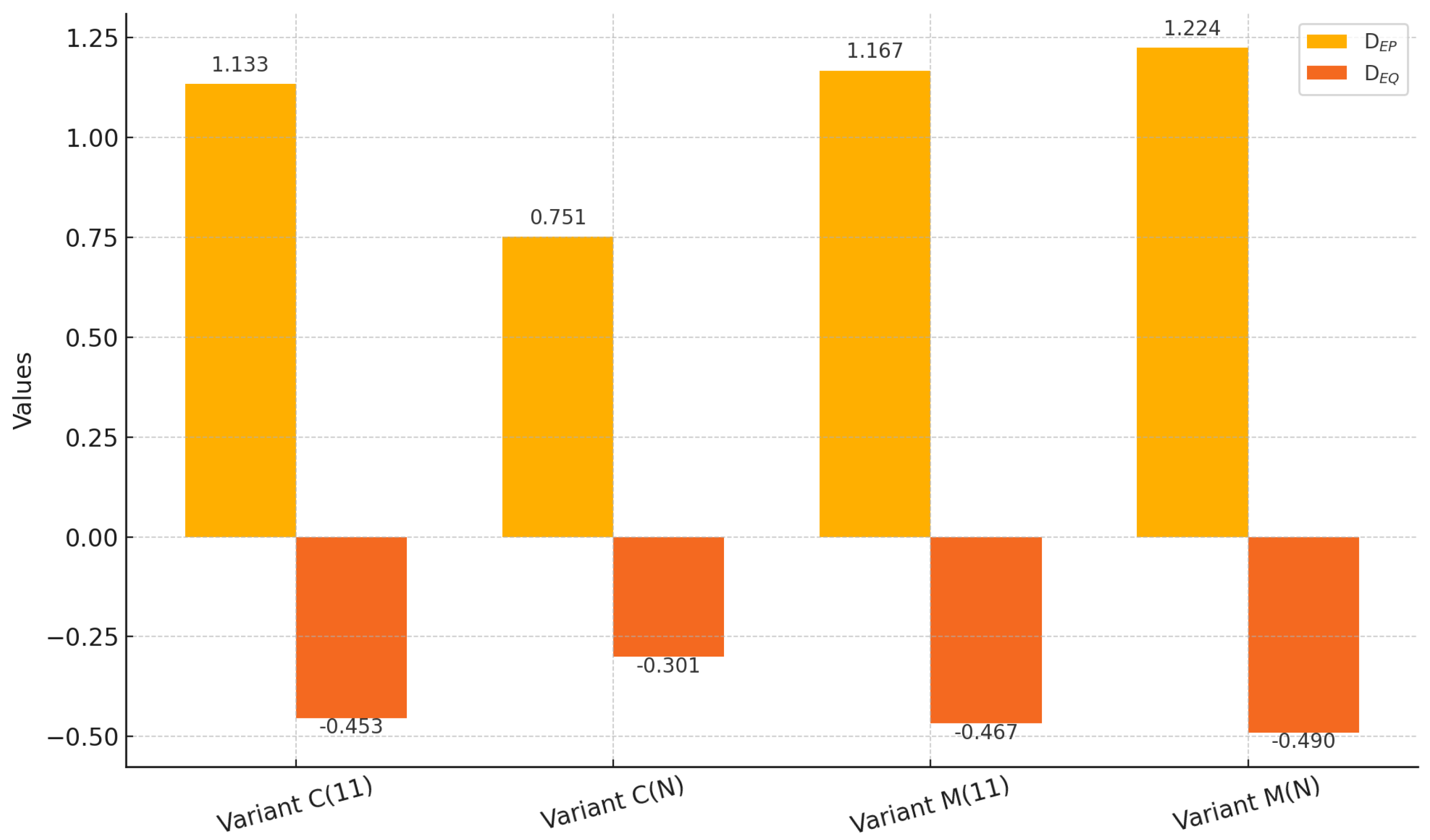 Determined indicators of annual active and reactive energy consumption: Variant C(1:1), variant C(N), variant M(1:1), and variant M(N). Source: author’s own study.