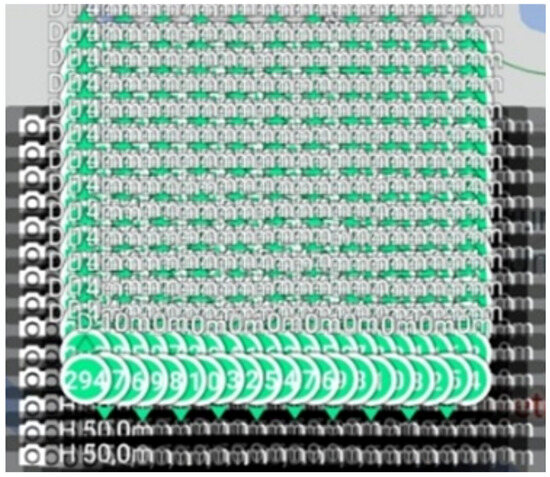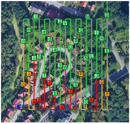 Following the outlined procedure, a UAV flight was executed over the study area. The detailed flight plan is presented in the accompanying Figure 6.