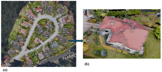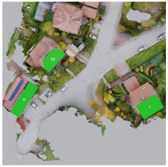 Recently, actions have also been undertaken to develop tools for collecting information on the usefulness of roofs for PV design. For instance, in study [10,11], UAV-derived 3D models were utilized to analyze rooftop solar potential, highlighting the method’s ability to accurately capture roof geometries and surrounding obstructions that impact solar exposure. Similarly, in paper [12], UAV technology was employed to obtain roof parameters affecting solar energy potential, including the determination of the area available for solar panels and estimating potential energy generation.