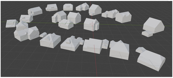 The next stage of processing is creating a simplified 3D models of buildings located in the study area while keeping the complexity of roofs. The generated 3D models of buildings are presented in Figure 9.