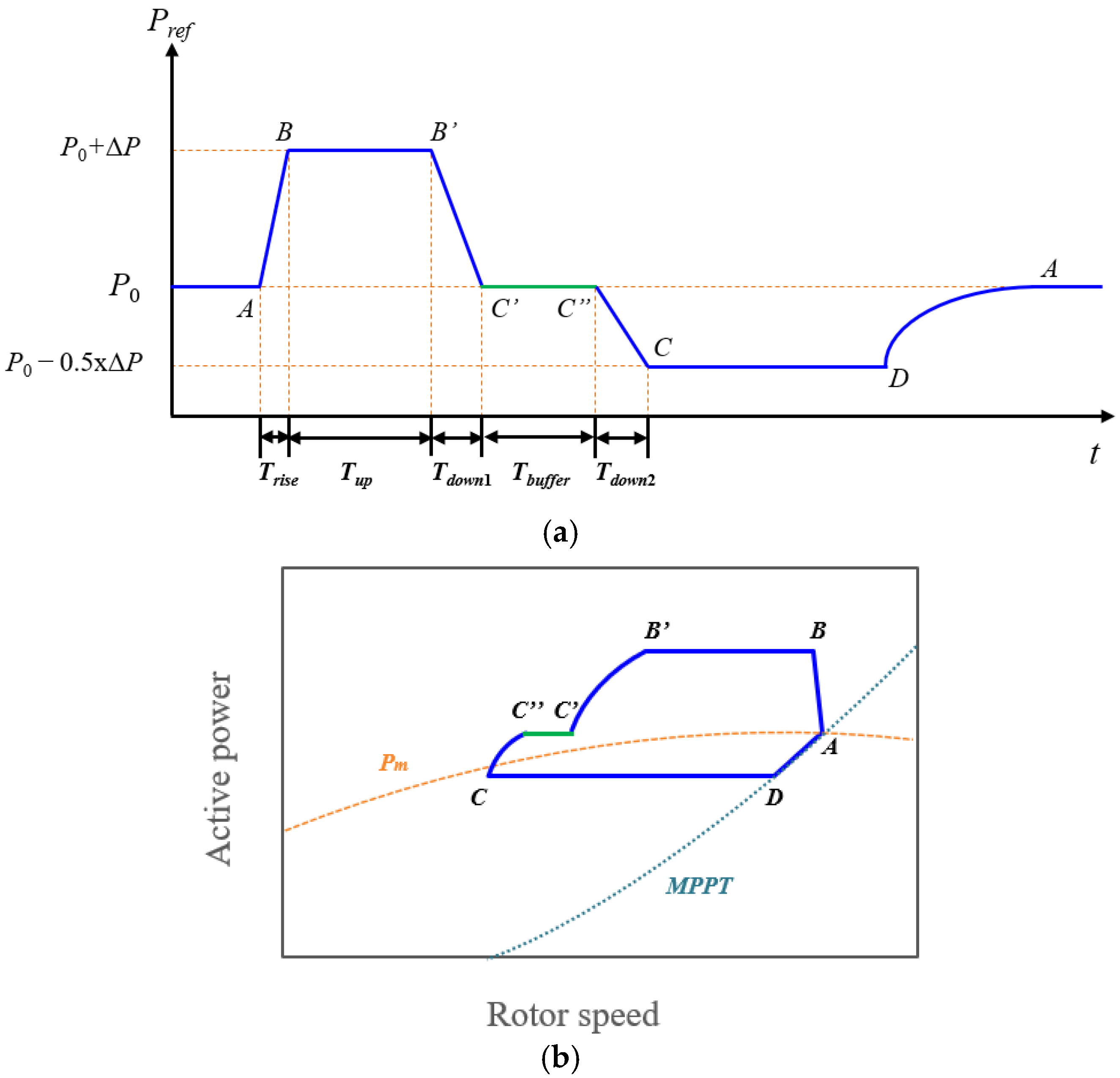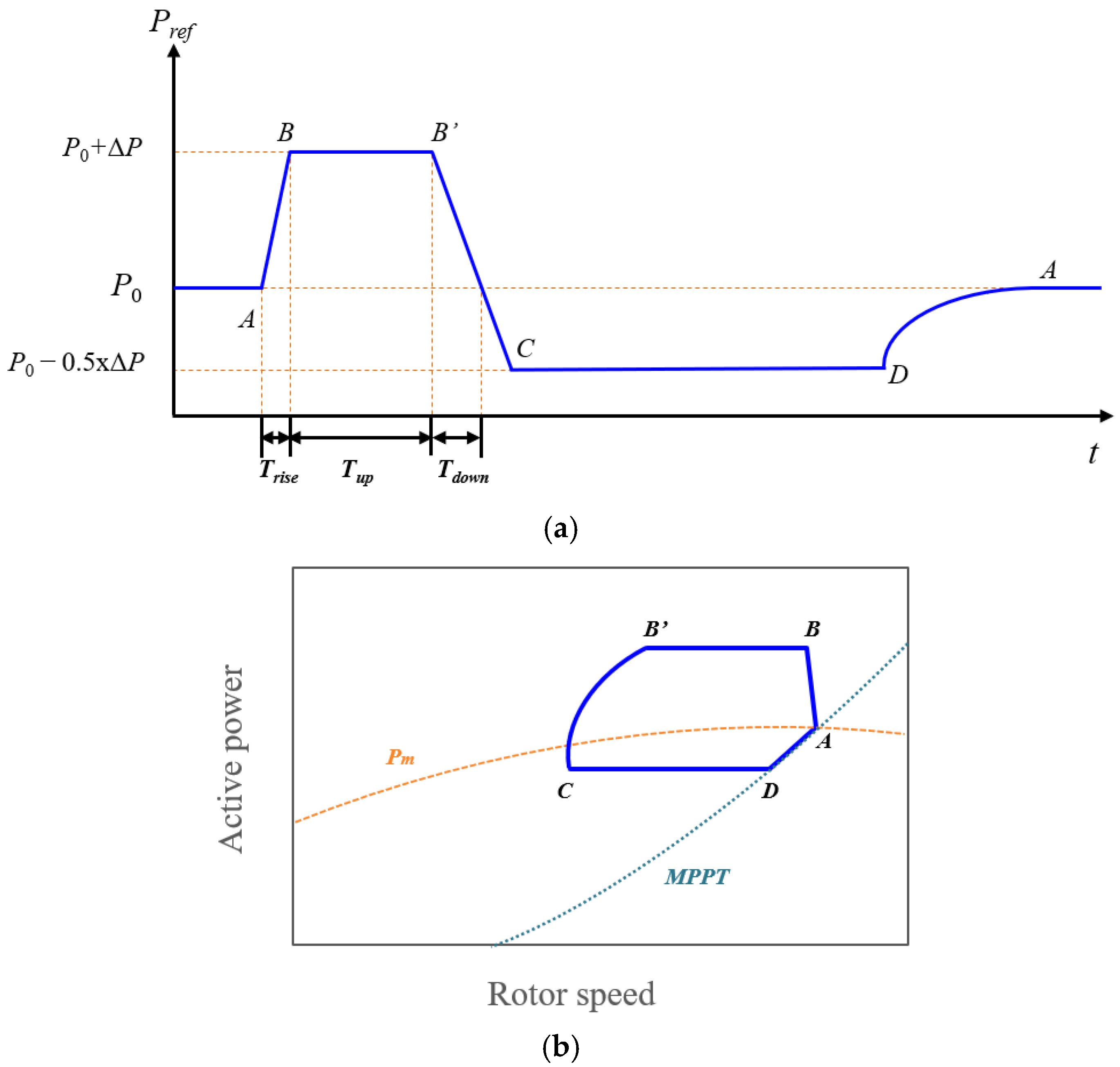 The dynamic behavior of the proposed requirement can be further understood through the power–rotor speed trajectory shown in