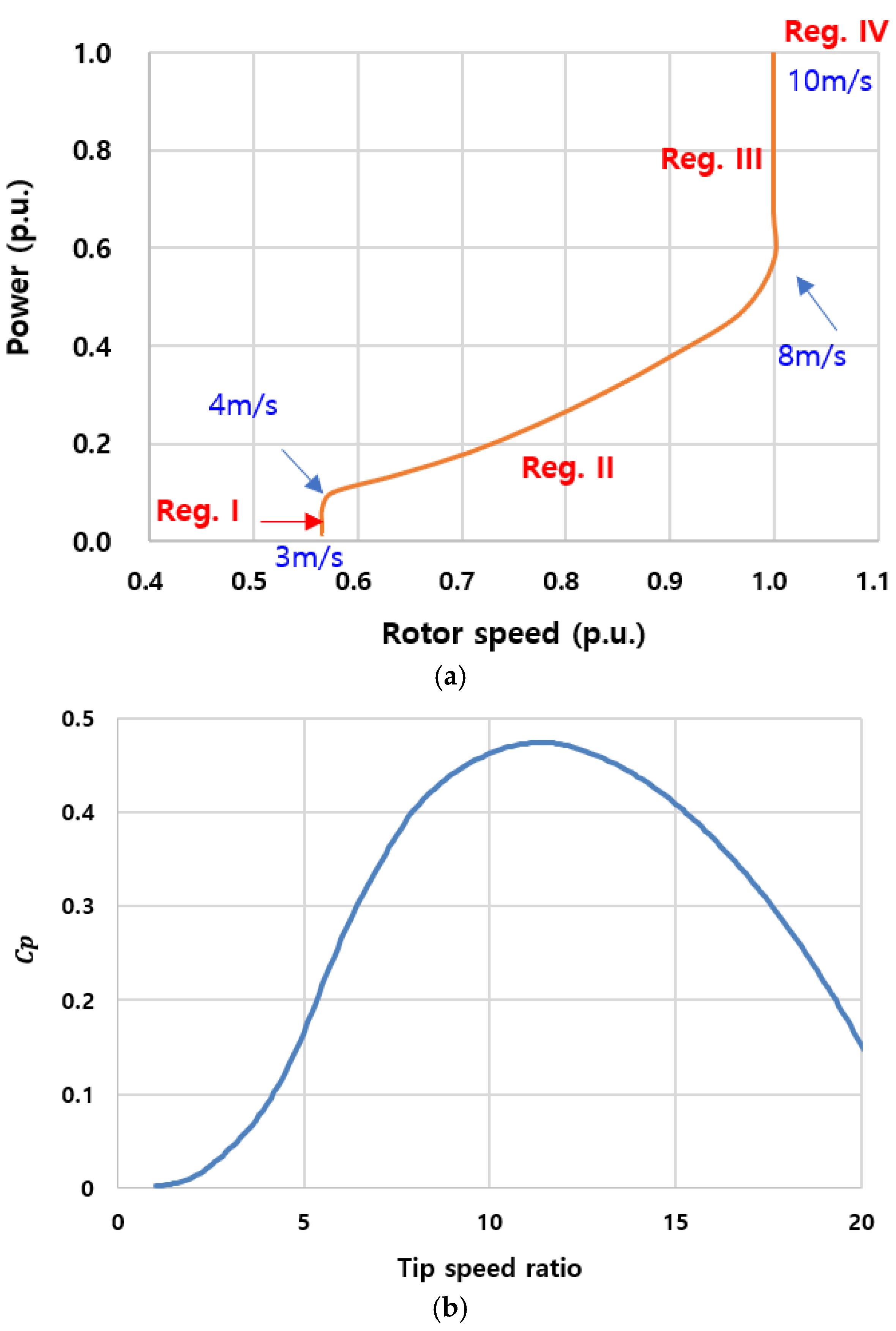 Figure 5a, while the corresponding power–rotor speed trajectory is shown in