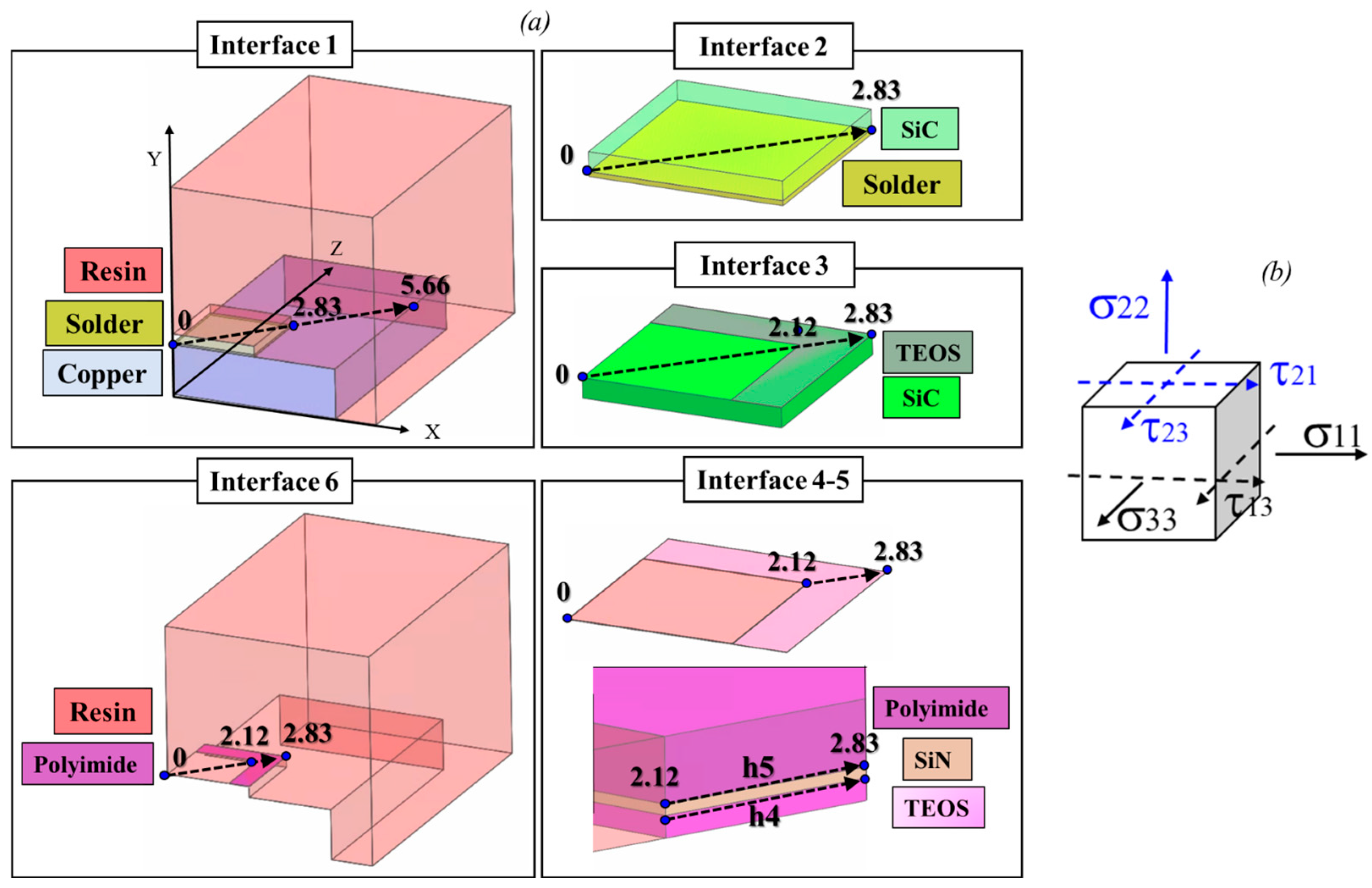 - Dudek, R.; Doering, R.; Pufall, R.; Kanert, W.; Seiler, B.; Rzepka, S.; Michel, B. Delamination Modeling for Power Packages by the Cohesive Zone Approach. In Proceedings of the 13th InterSociety Conference on Thermal and Thermomechanical Phenomena in Electronic Systems, San Diego, CA, USA, 30 May–1 June 2012; IEEE: San Diego, CA, USA, 2012; pp. 187–193. [Google Scholar]