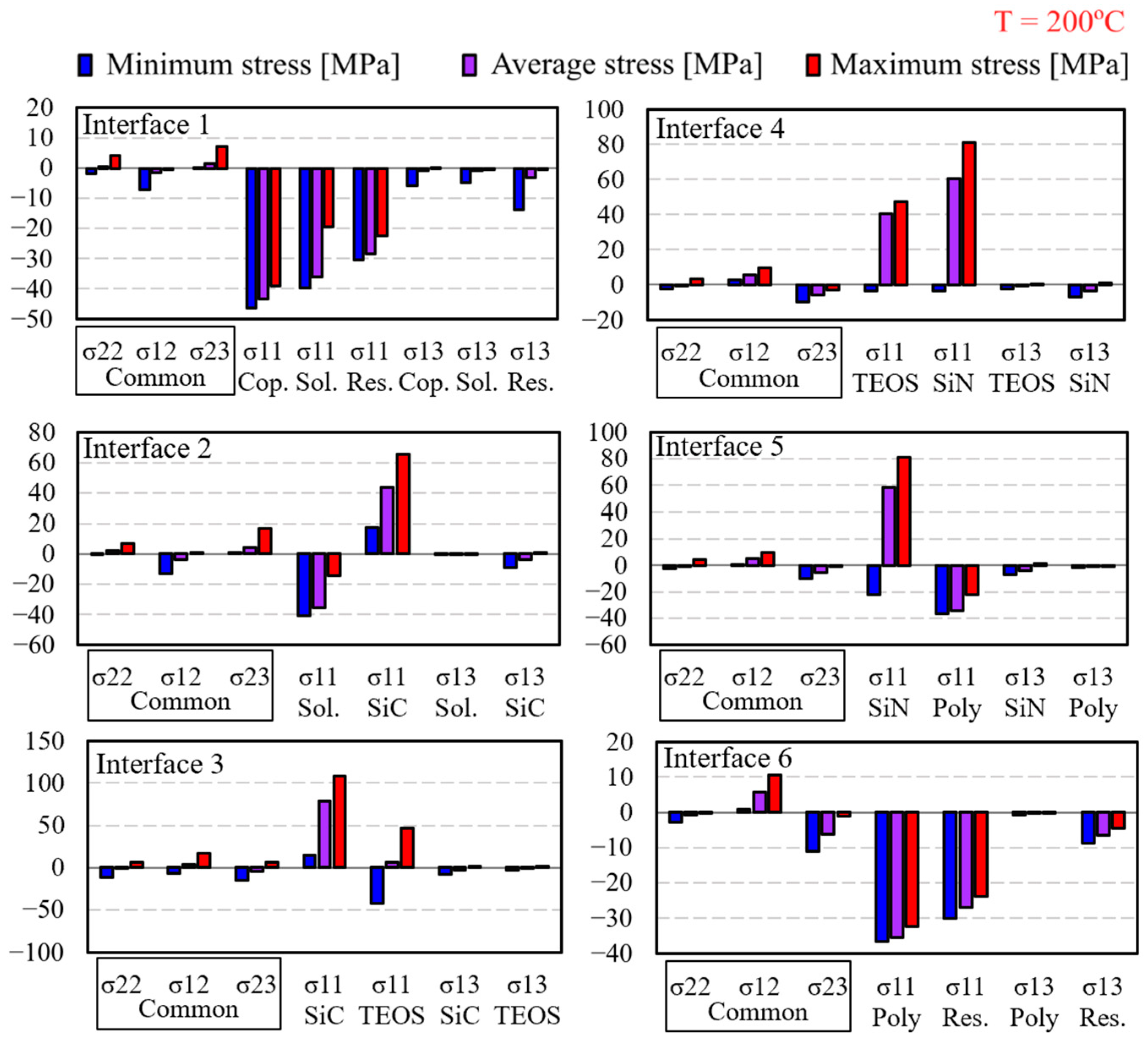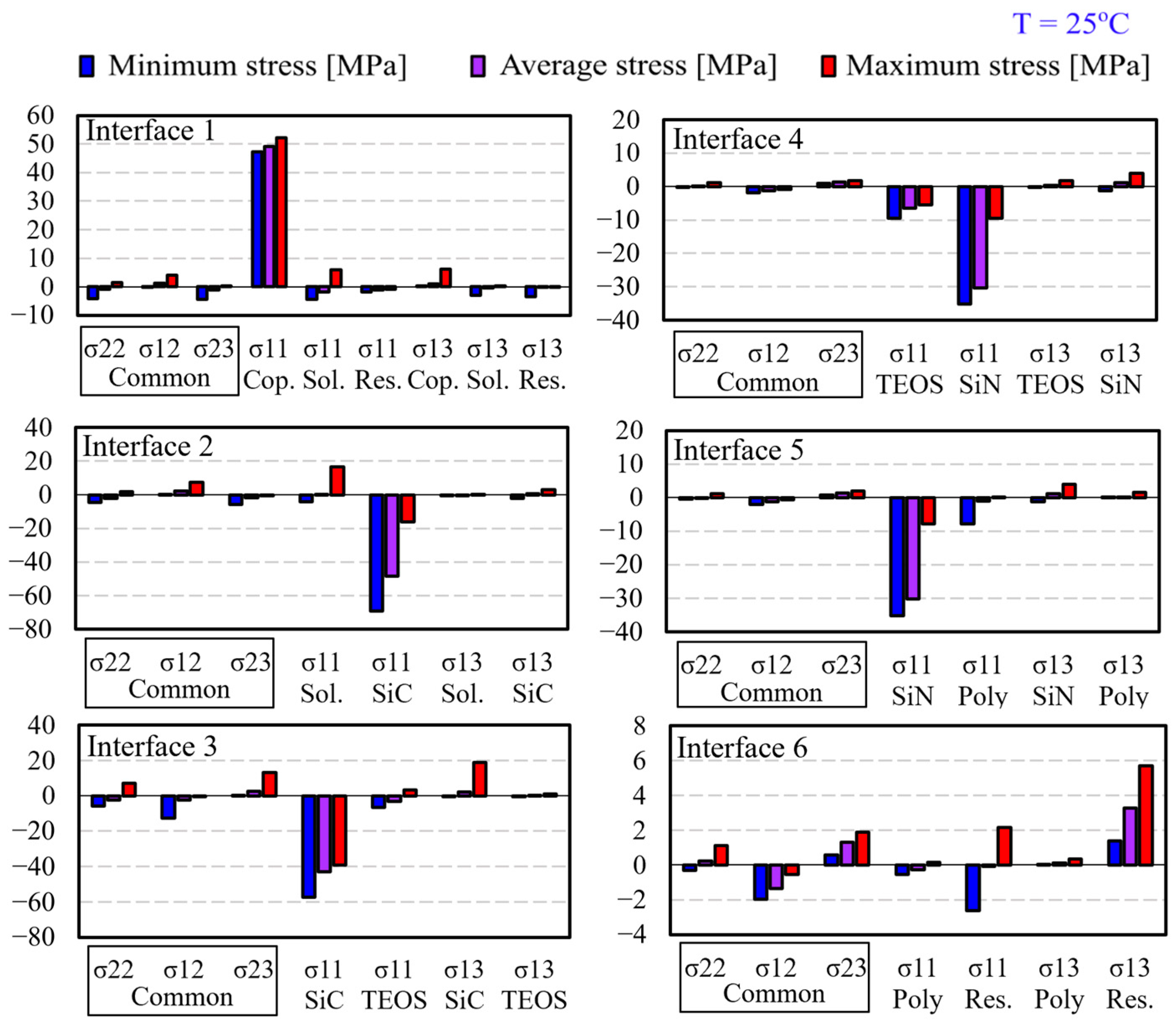 4.1. Stresses at Different Interfaces at the Peak Temperature
