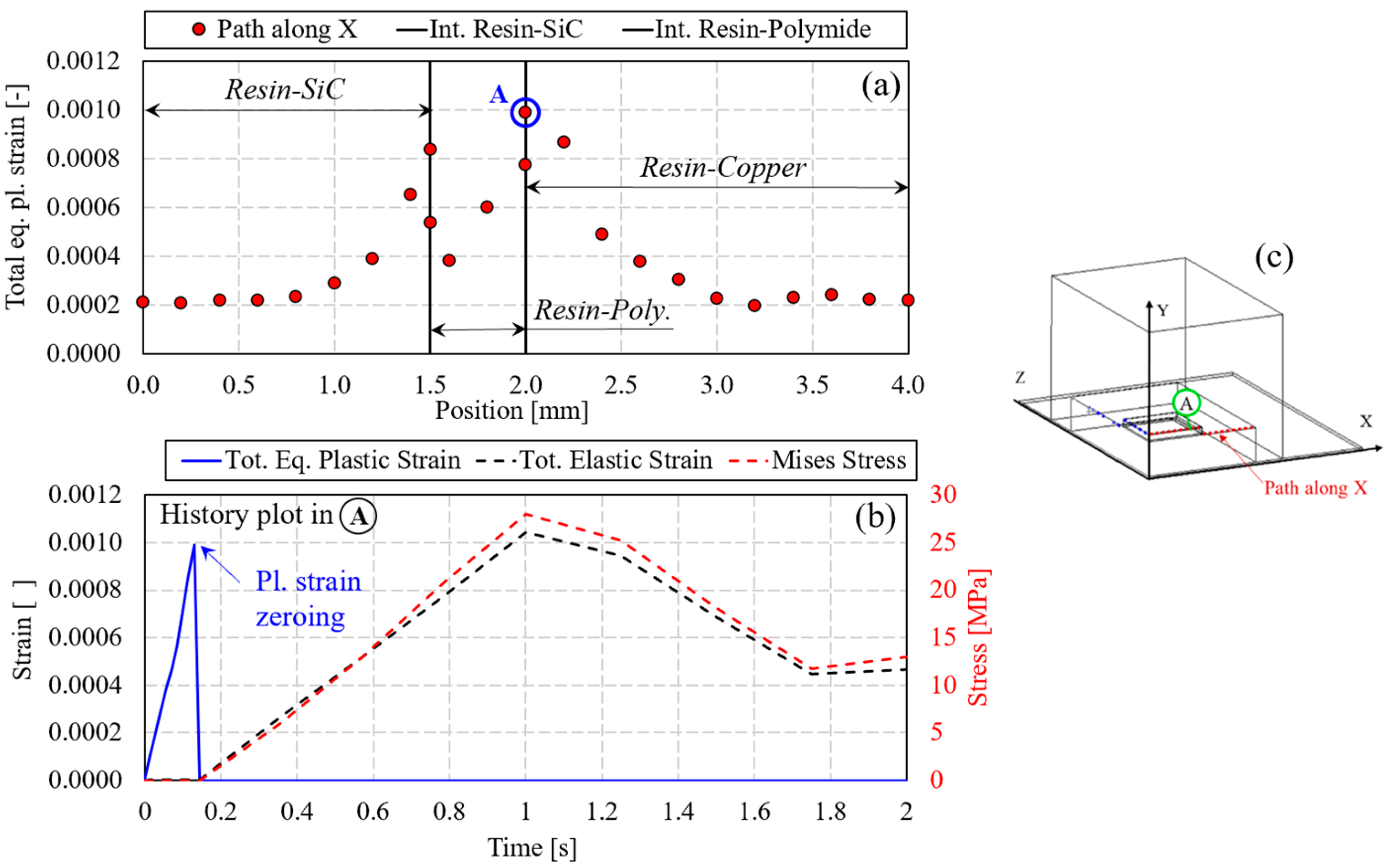 - the resin is stretched-deformed following the deformed shape of the “Copper-to-Poly” assembly, but it is not generating any stress nor is it storing any elastic strain which would generate unrealistic stresses in the successive simulation stages.