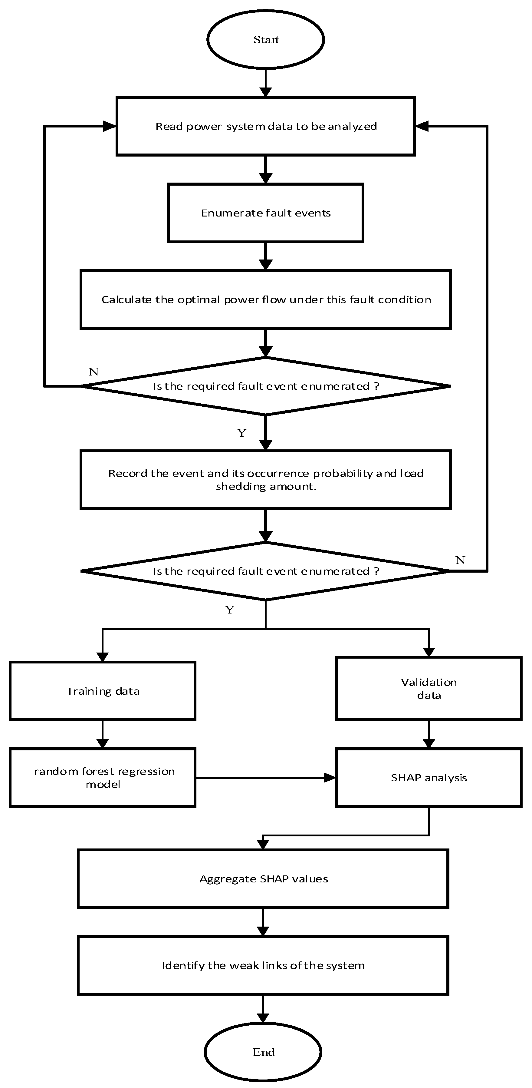 16] proposes a method to apportion system-level reliability indices to individual components. This enables the quantification of each component’s contribution to system reliability and supports the identification of weak links. However, this approach only allocates contributions proportionally and does not fully incorporate distinctions among component types, electrical characteristics, or reliability parameters, which limits its practical applicability. In recent years, with the development of explainable artificial intelligence technology, some studies have begun to introduce the SHAP algorithm into power system analysis. Reference [