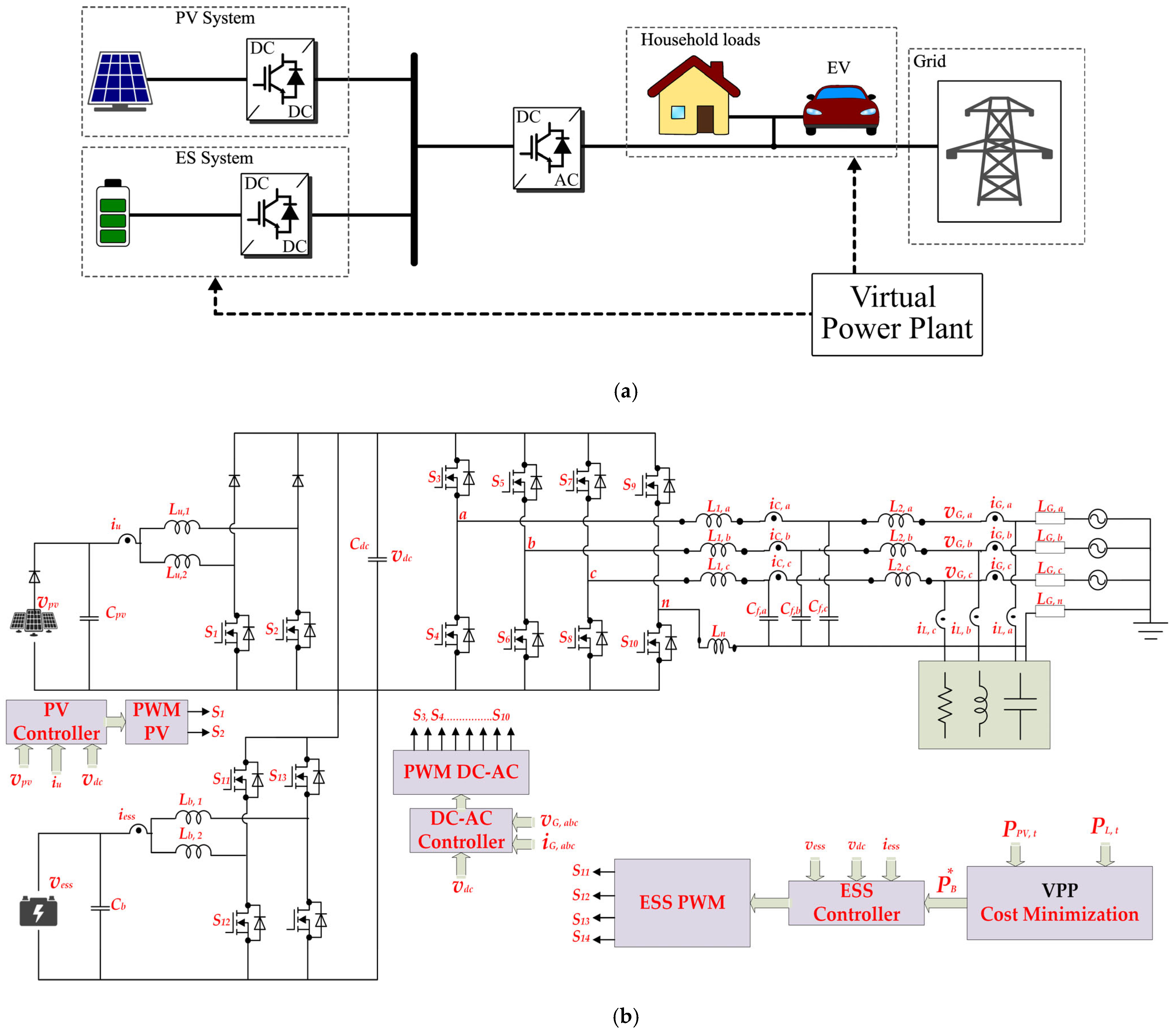 18] modifies the battery’s minimum charge level based on predictions of energy generation and use. It is interesting to note that, in contrast to many systems that depend on additional ES devices, this method sends control signals straight from the top-level controller to the inverter. To help fulfil peak demand, an electric car is utilized in [