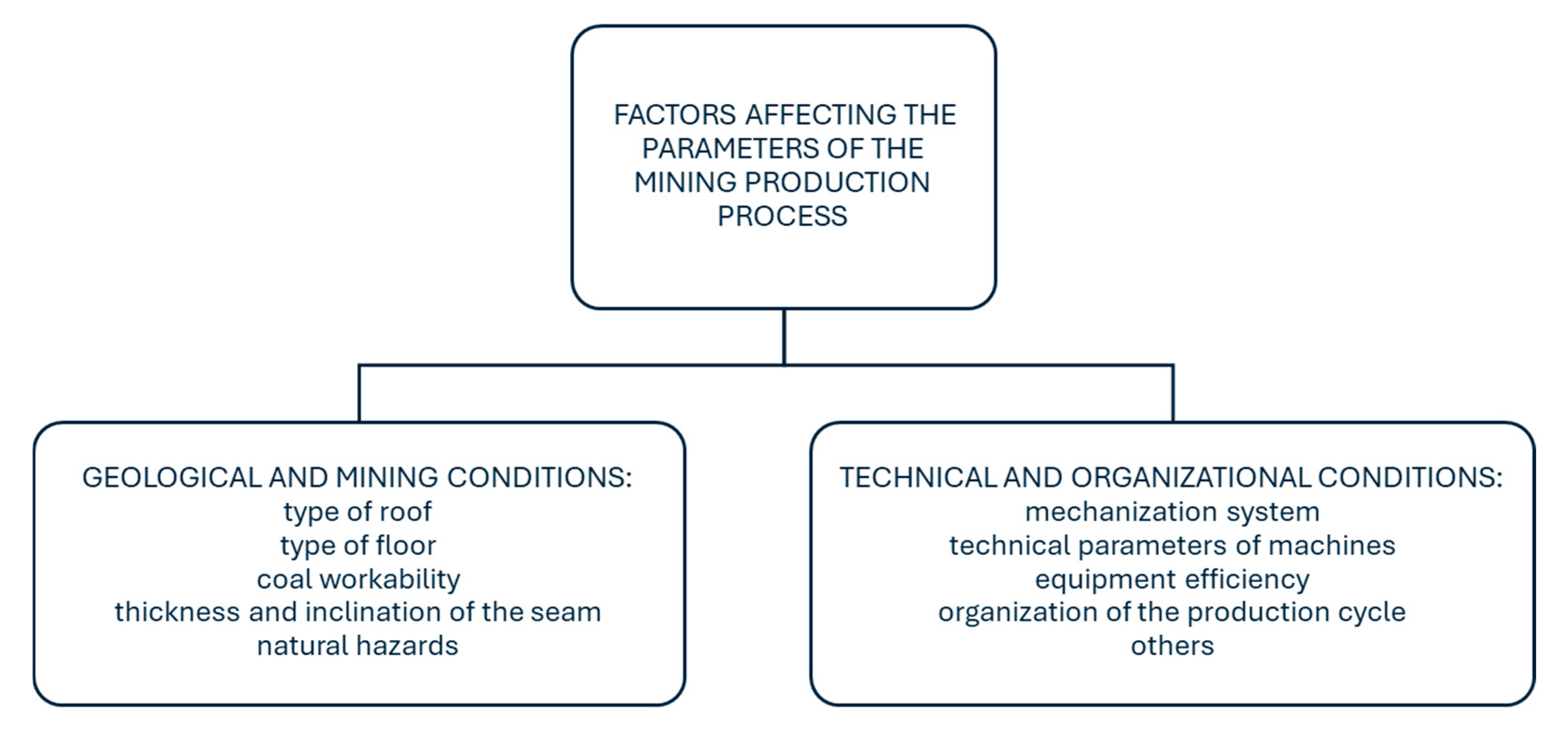 1.1. Factors Influencing the Course of the Production Process Carried out in the Longwall Face
