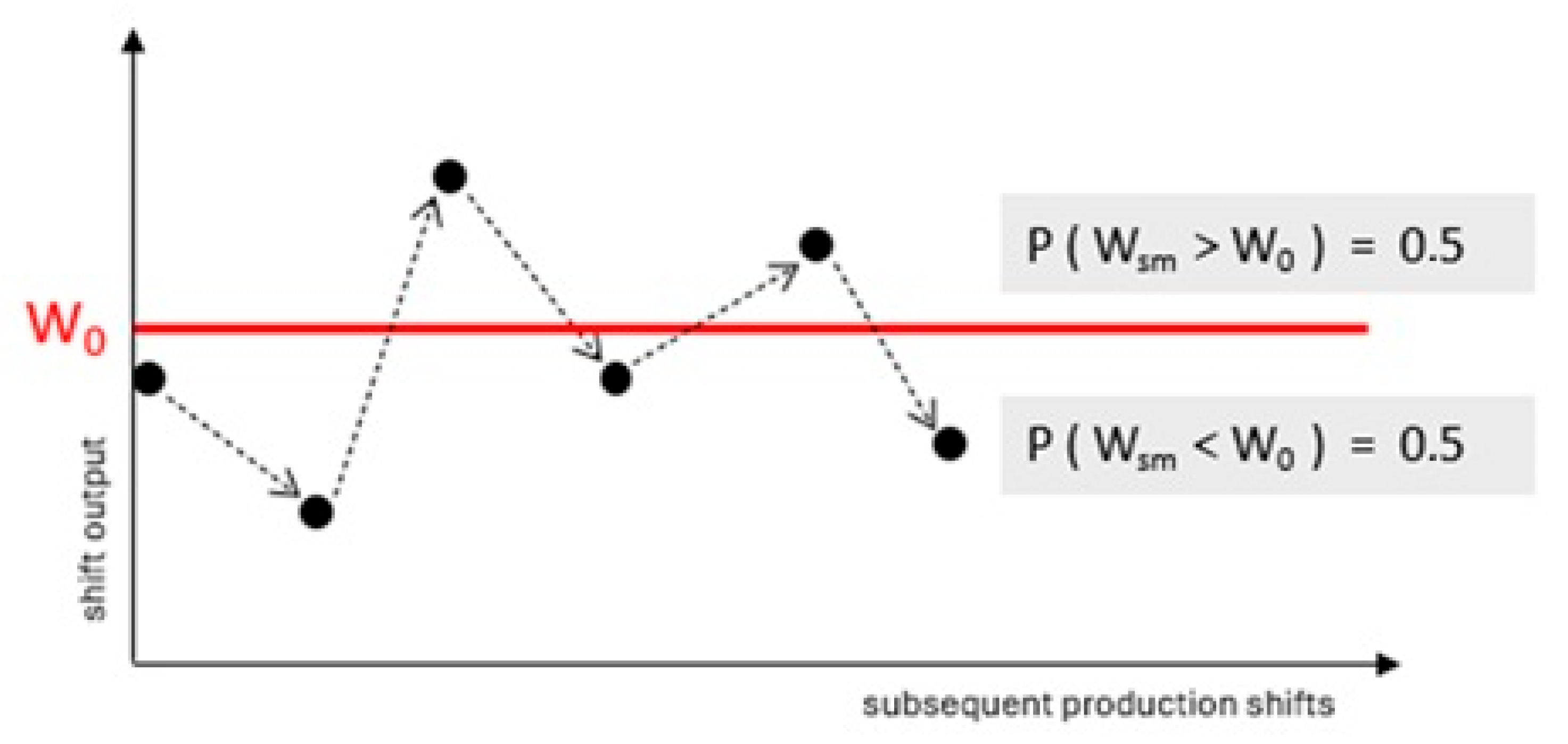 2.3.2. Stochastic Model of Coal Output from a Longwall Face Using Unidirectional Shearer-Based Mining Technology