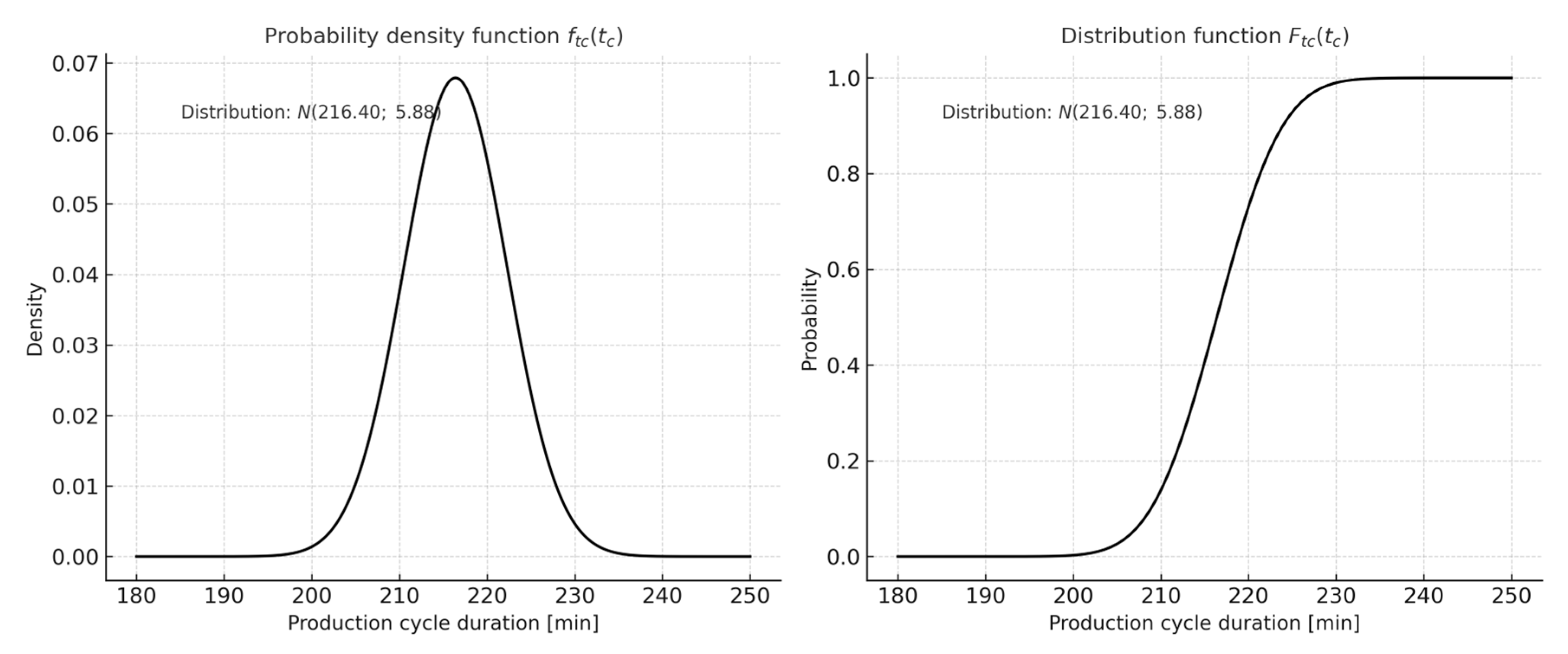 - Replacing deterministic variables with random variables allows for the simultaneous consideration of multiple factors influencing the duration of an activity in the form of a probability density function. The probability criterion for achieving the assumed module completion time used in the method allows for rational staffing selection, which supports management processes.