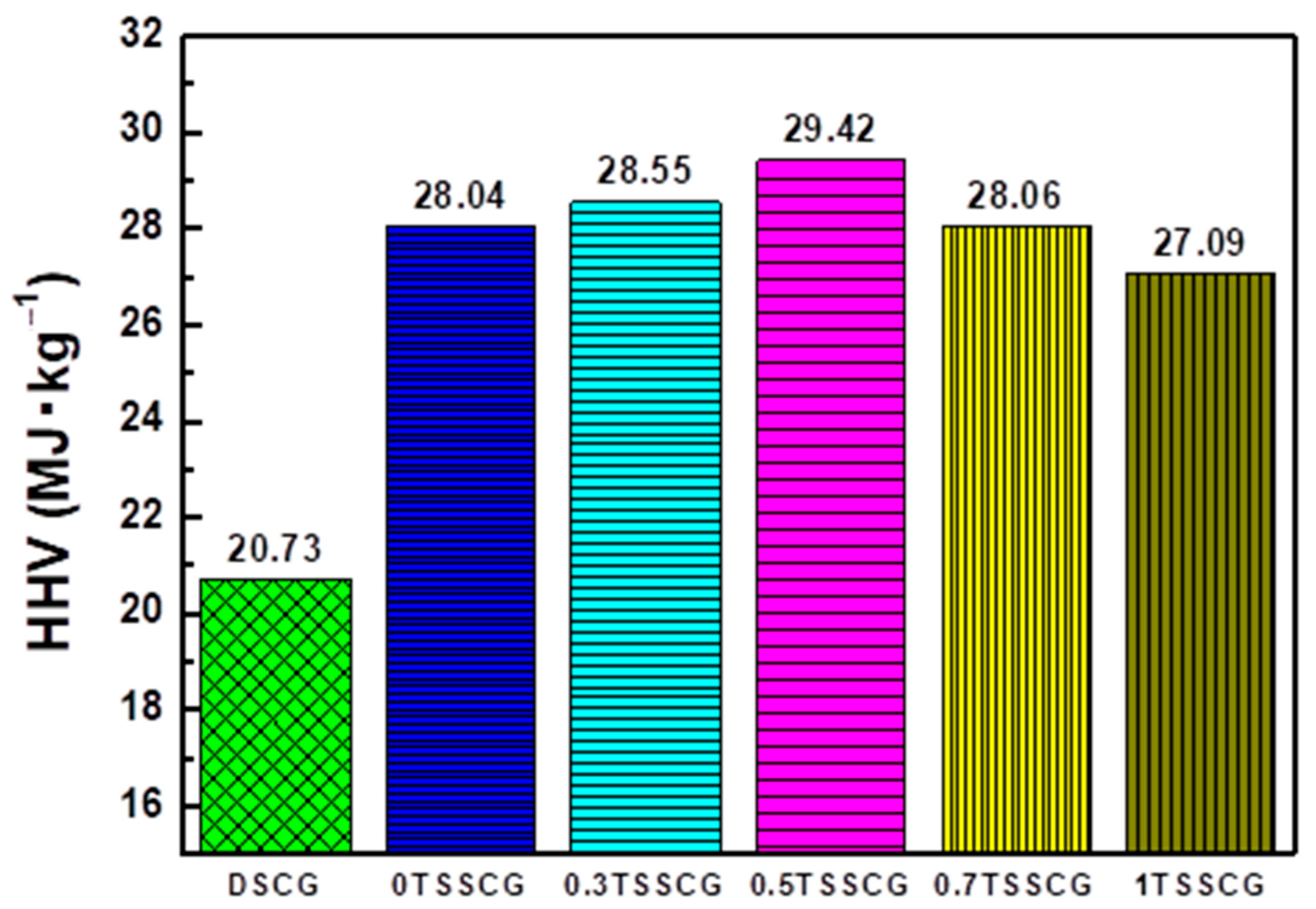 Formulas of HHV (MJ∙kg−1) | DSCG | 0TSSCG | 0.5TSSCG |