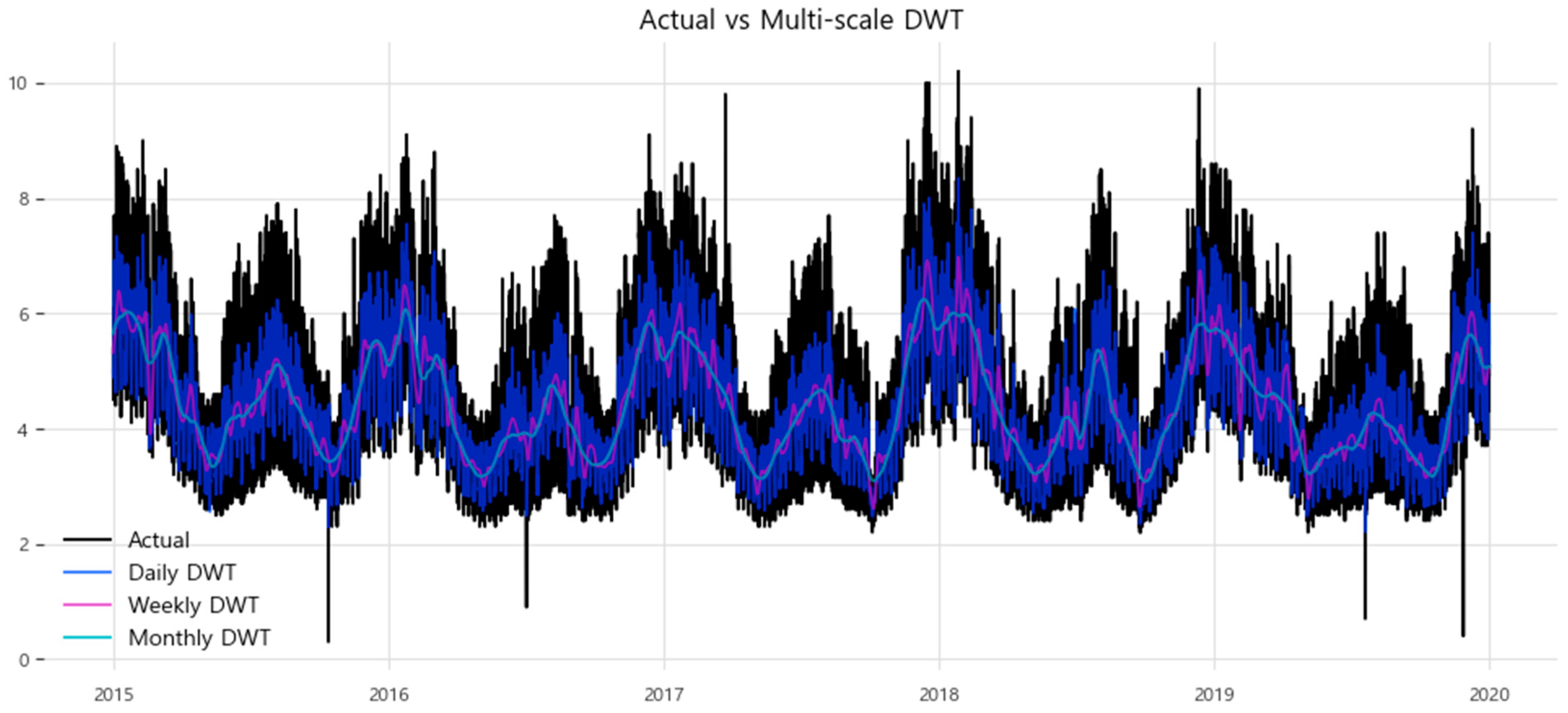 - Nabavi, S.A.; Mohammadi, S.; Motlagh, N.H.; Tarkoma, S.; Geyer, P. Deep learning modeling in electricity load forecasting: Improved accuracy by combining DWT and LSTM. Energy Rep. 2024, 12, 2873–2900. [Google Scholar] [CrossRef]