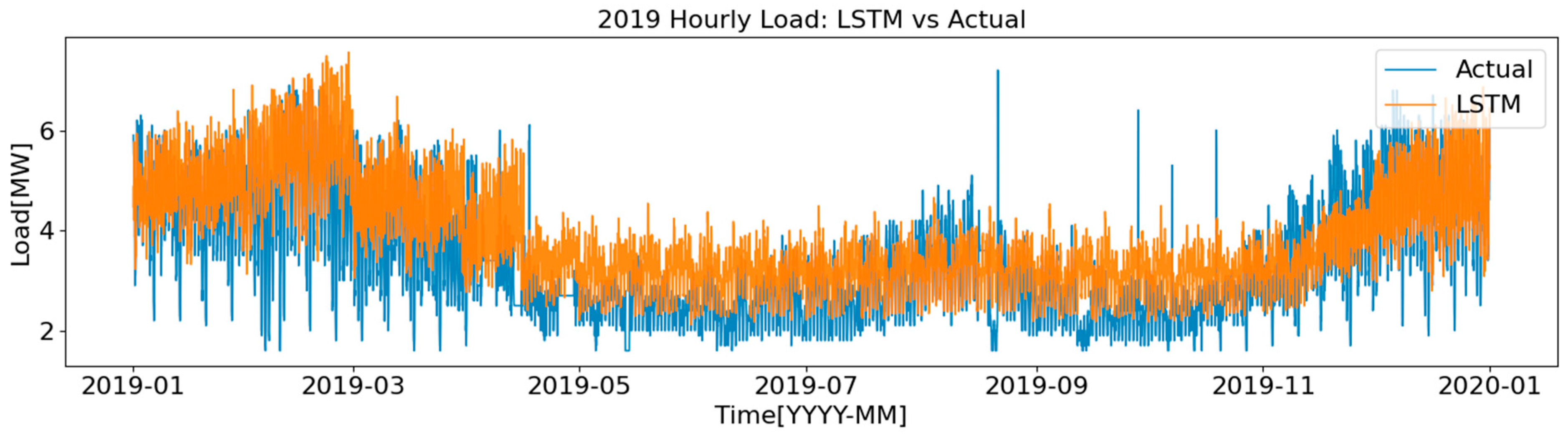 - Agrawal, R.K.; Muchahary, F.; Tripathi, M.M. Long term load forecasting with hourly predictions based on long-short-term-memory networks. In Proceedings of the 2018 IEEE Texas Power and Energy Conference (TPEC), College Station, TX, USA, 8–9 February 2018; pp. 1–6. [Google Scholar] [CrossRef]