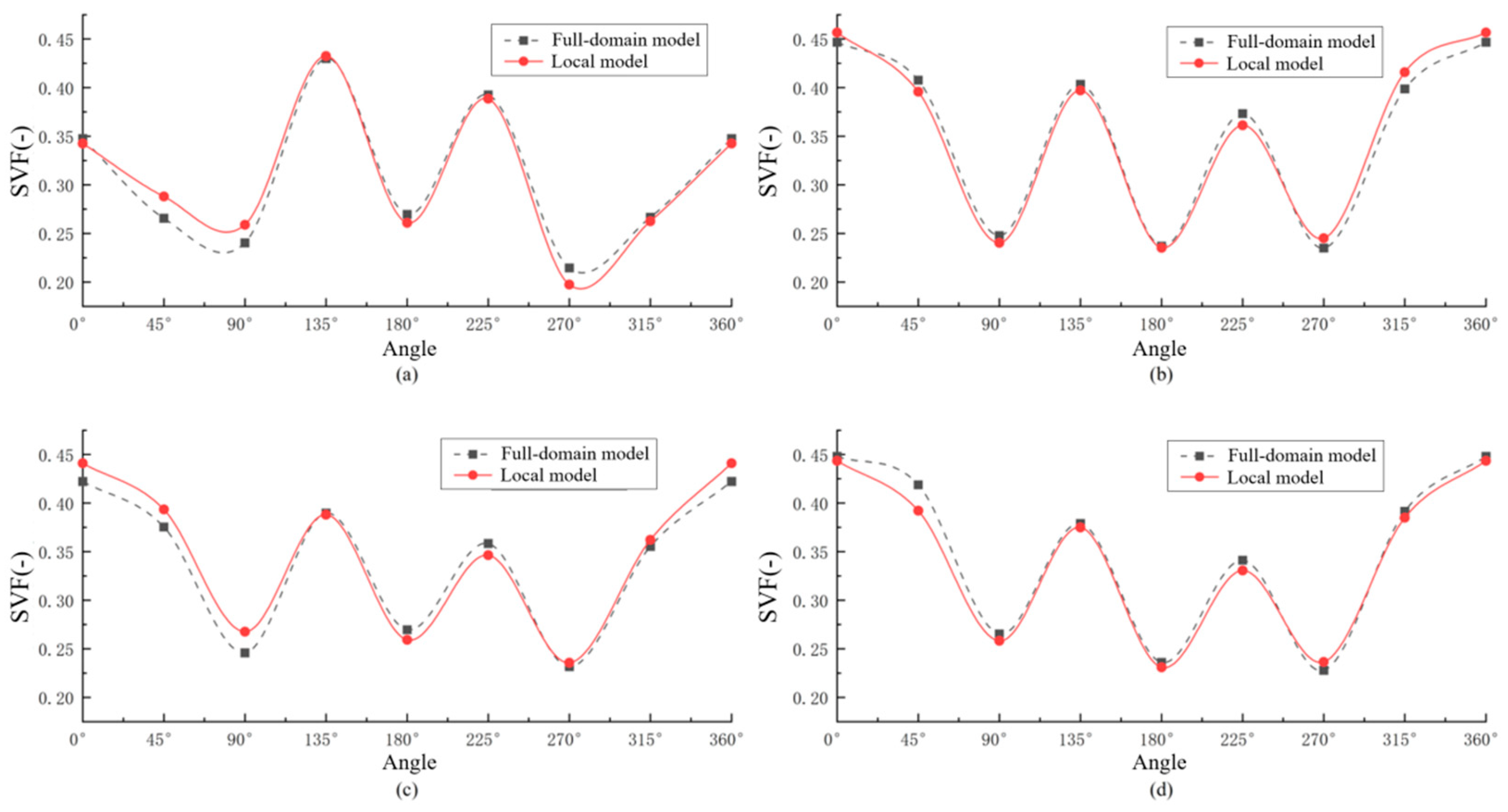 Figure 4, the variation trends of the solid-phase volume fraction along the tube wall in the full-domain and local models were generally consistent. The calculation results of the solid-phase volume fraction in the full-domain and local models showed high agreement at the 90°, 135°, 180°, 225°, and 270° positions in each tube. However, the computational differences increased slightly in the upper region of the tube bundle (0°, 45°, and 315°). The largest absolute error occurred at the 45° position of the seventh tube (0.026), and all calculation errors were within an acceptable range. To save computational resources and validate the rationality of the reduced-order prediction model more quickly, this study employed a local grid for the computational analysis.
