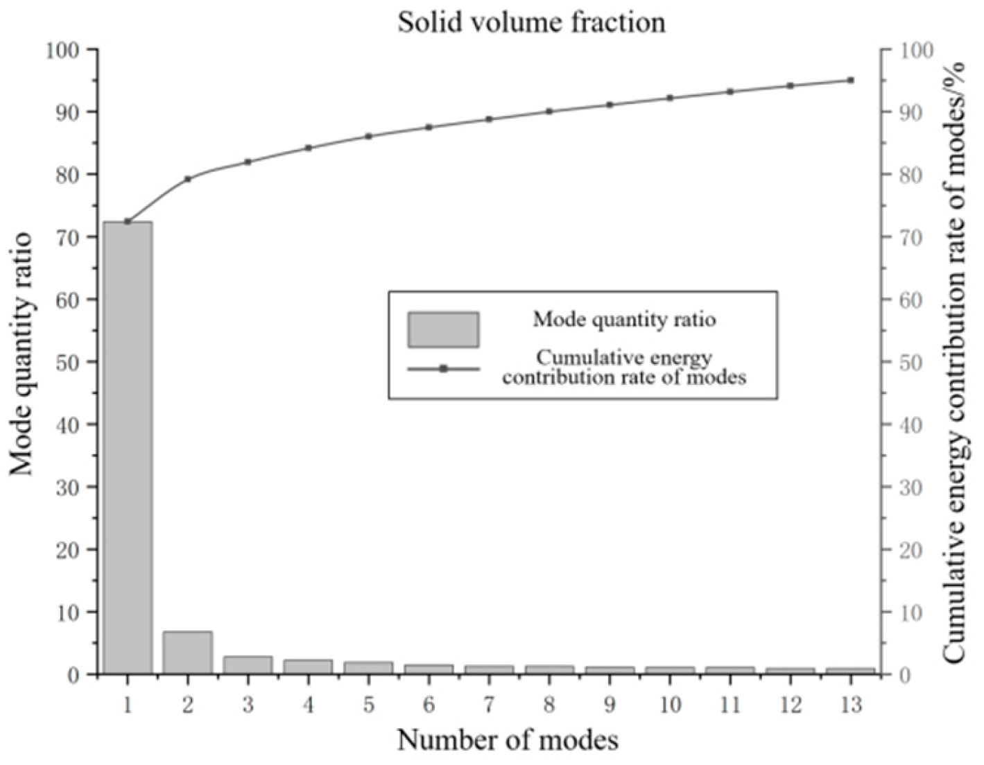 Typically, the selection of the number of modes needs to consider the energy proportion of each mode and the cumulative energy contribution rate of all selected modes, which is calculated using the following formula [