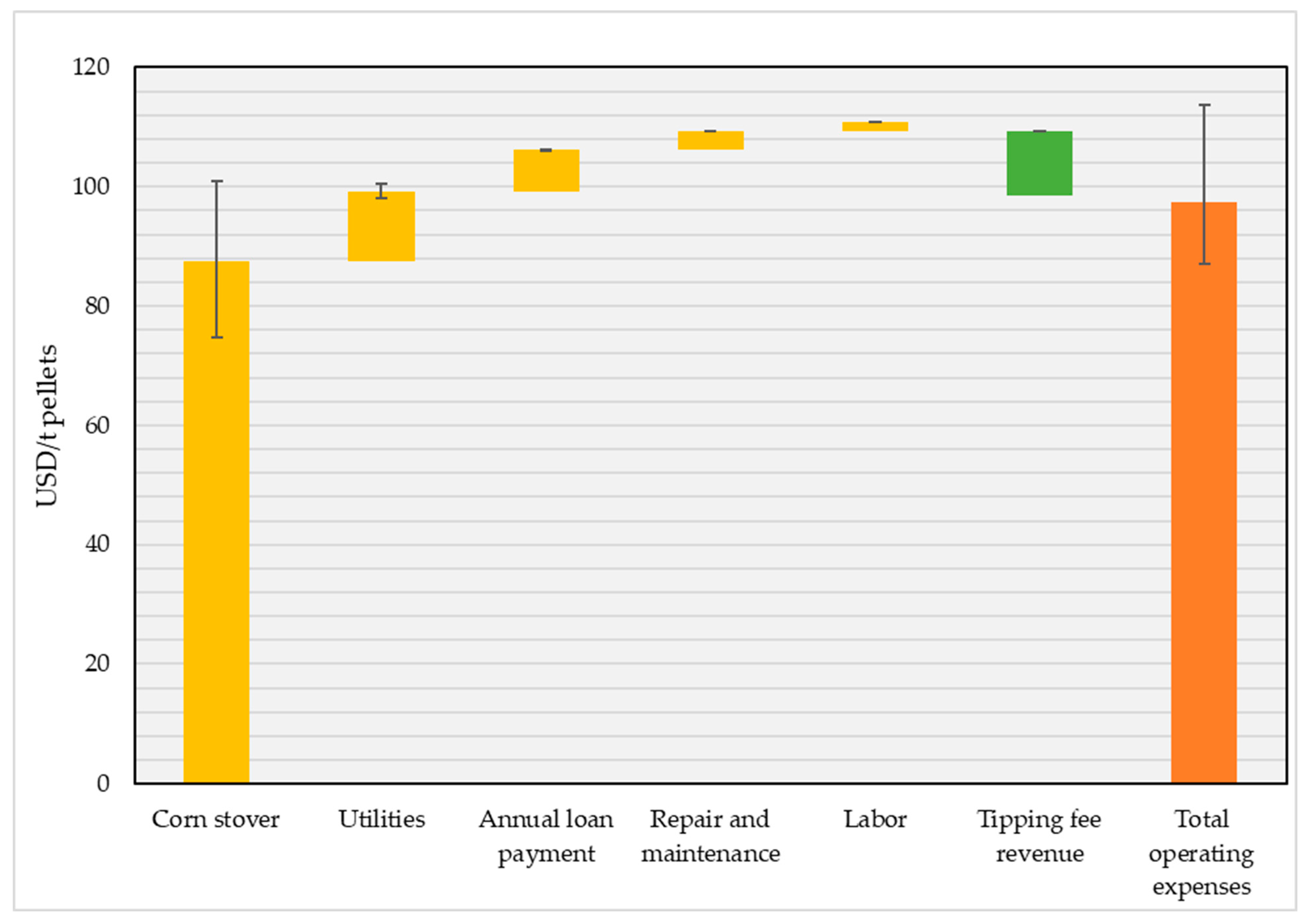 | Stover (USD/dry t stover) [31] | 121.9 | 98.9 | 152.3 |