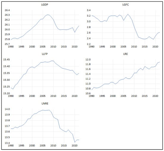 Figure 1 depicts the variables of model (3) for the period 1990–2022.