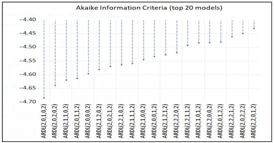 - Pesaran, M.H.; Shin, Y.; Smith, R.J. Bounds testing approaches to the analysis of level relationships. J. Appl. Econom. 2001, 16, 289–326. [Google Scholar] [CrossRef]