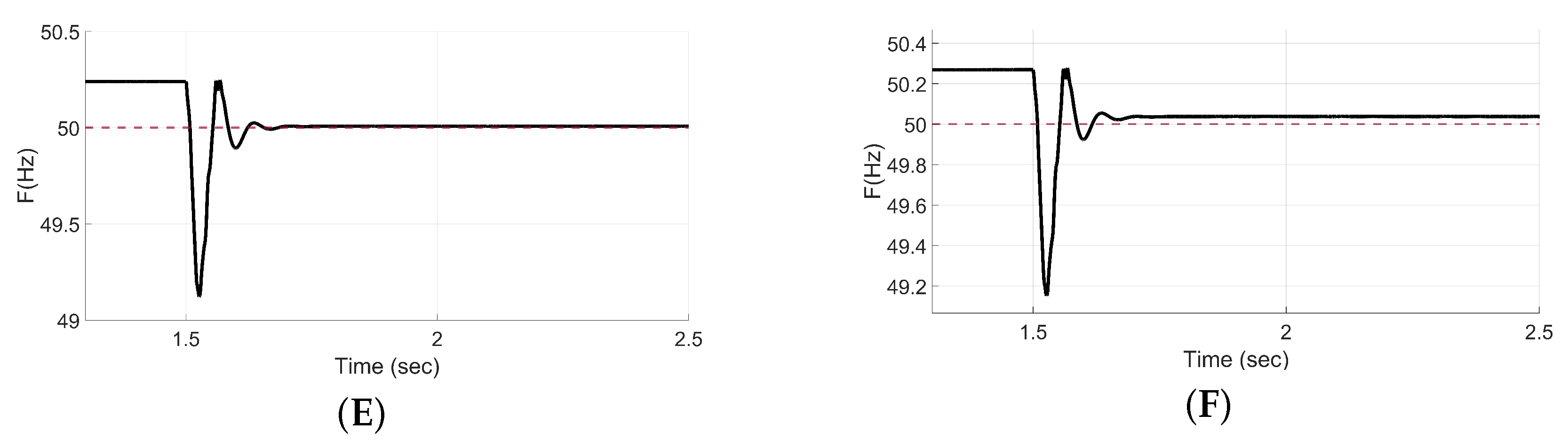 Figure 5, the supervised system exhibits smoother and faster frequency stabilization. This demonstrates the adaptability of the proposed controller not only to generation-side disturbances but also to load-side variations.