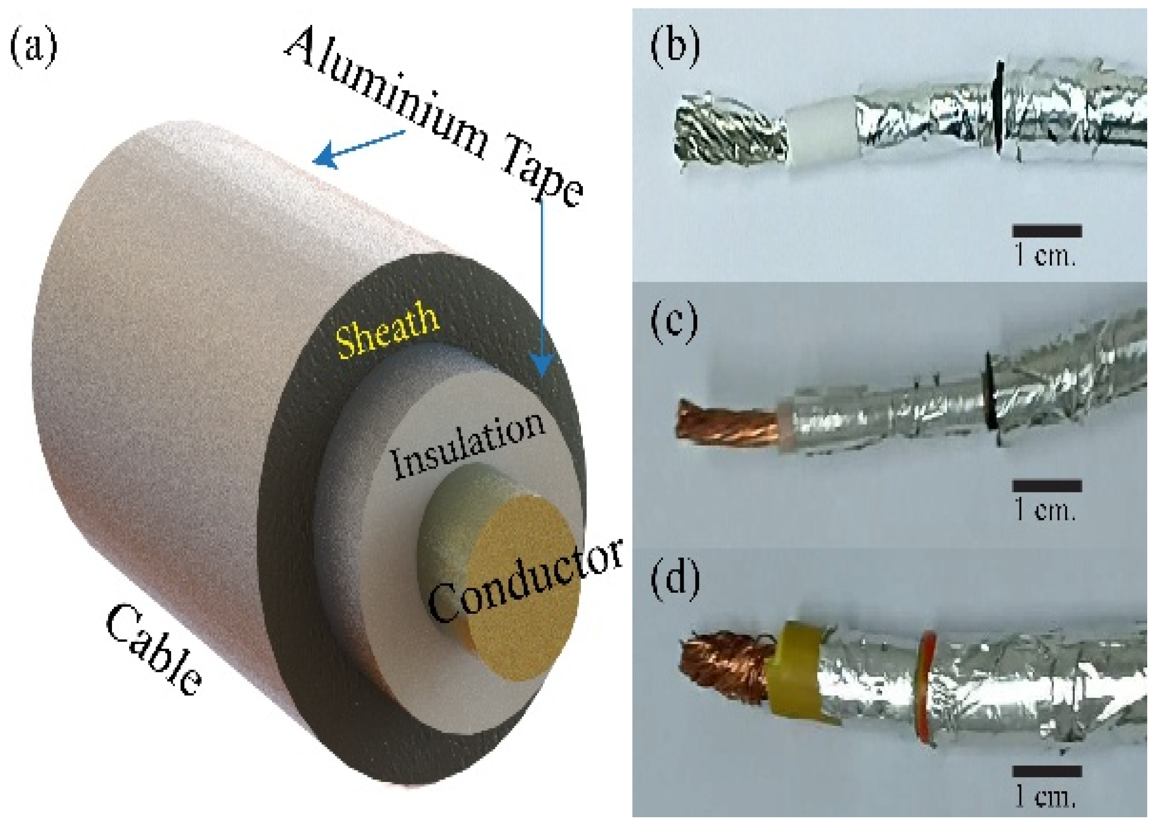 - Ohki, Y.; Hirai, N. Effects of the structure and insulation material of a cable on the ability of a location method by FDR. IEEE Trans. Dielectr. Electr. Insul. 2016, 23, 77–84. [Google Scholar] [CrossRef]