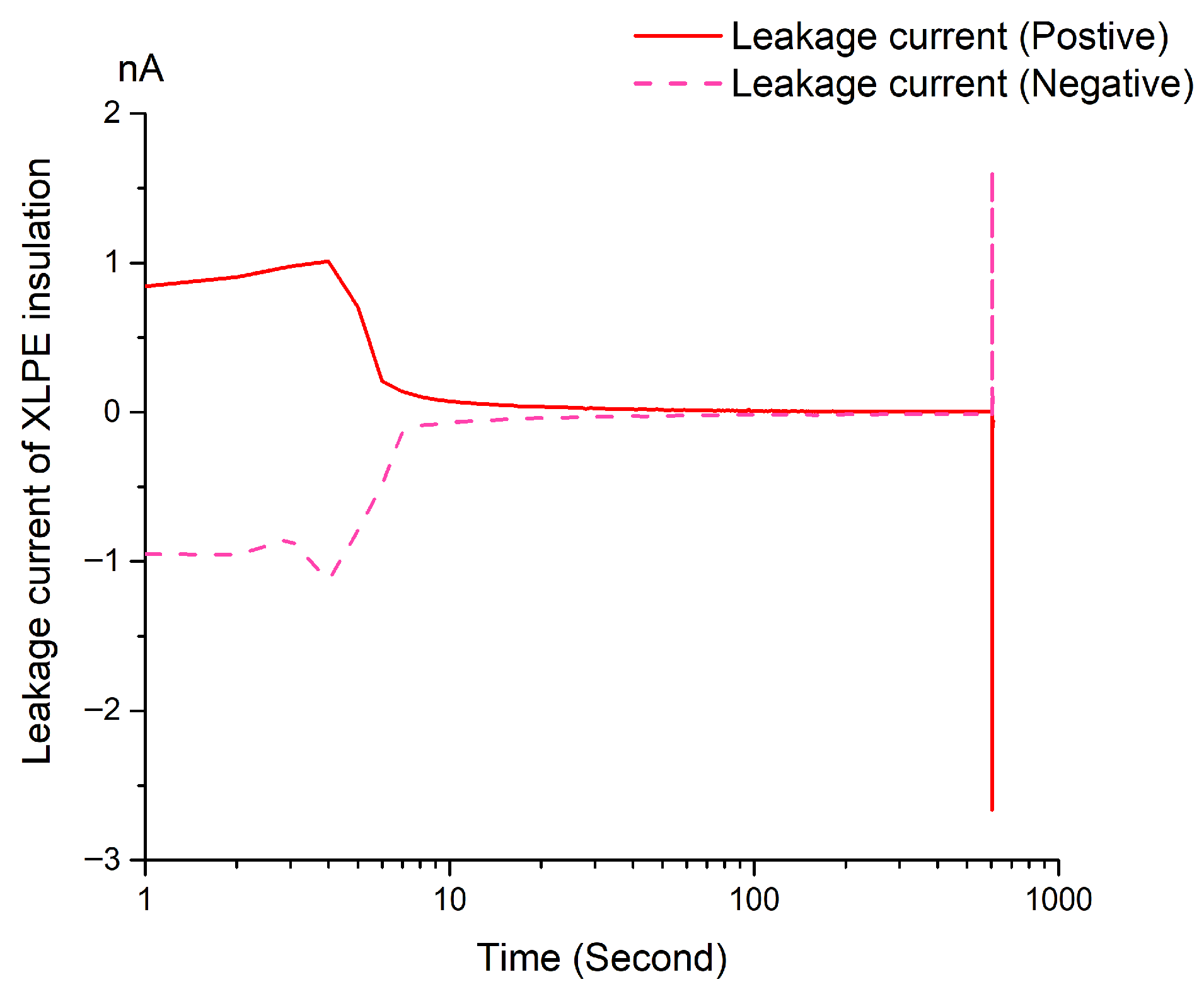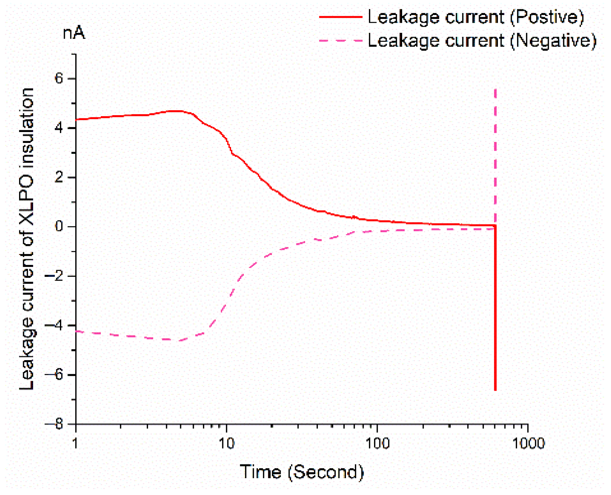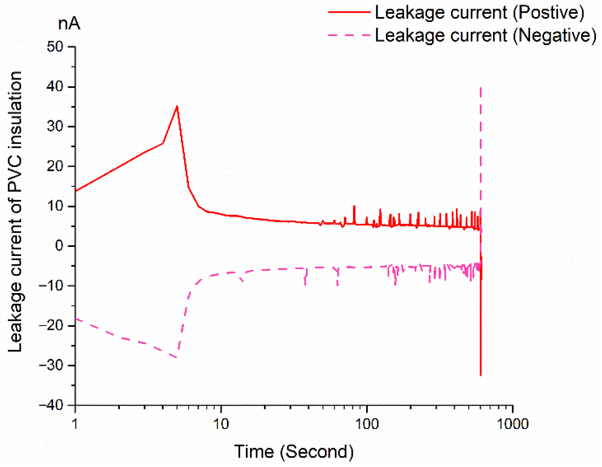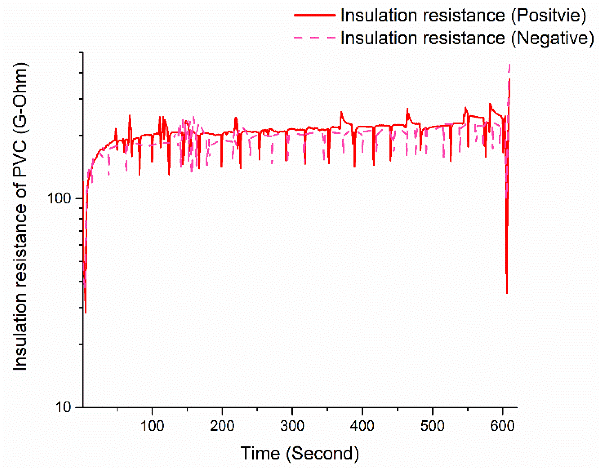 3.1. Leakage Current and Insulation Resistance Characteristics of Virgin Insulation Materials
