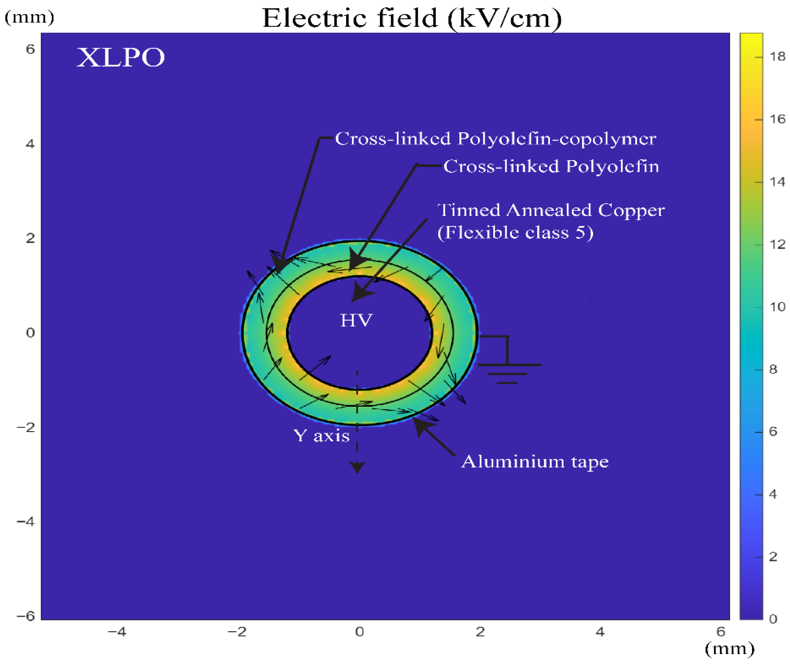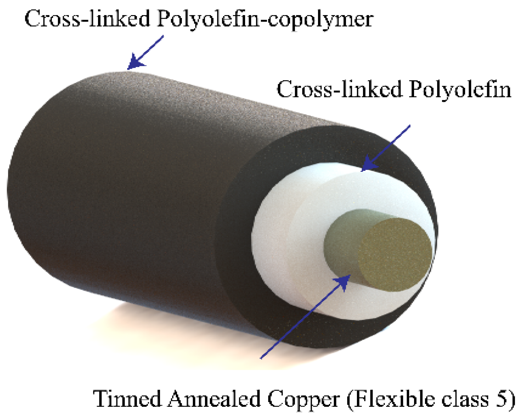 - Tian, Z.; Sun, L.; Wang, J.; Bai, X. A Study of Simulation on Relationship Between Young’s Modulus of Cable joints and Interface Pressure Based on Finite Element Method. J. Phys. Conf. Ser. 2019, 1187, 022036. [Google Scholar] [CrossRef]