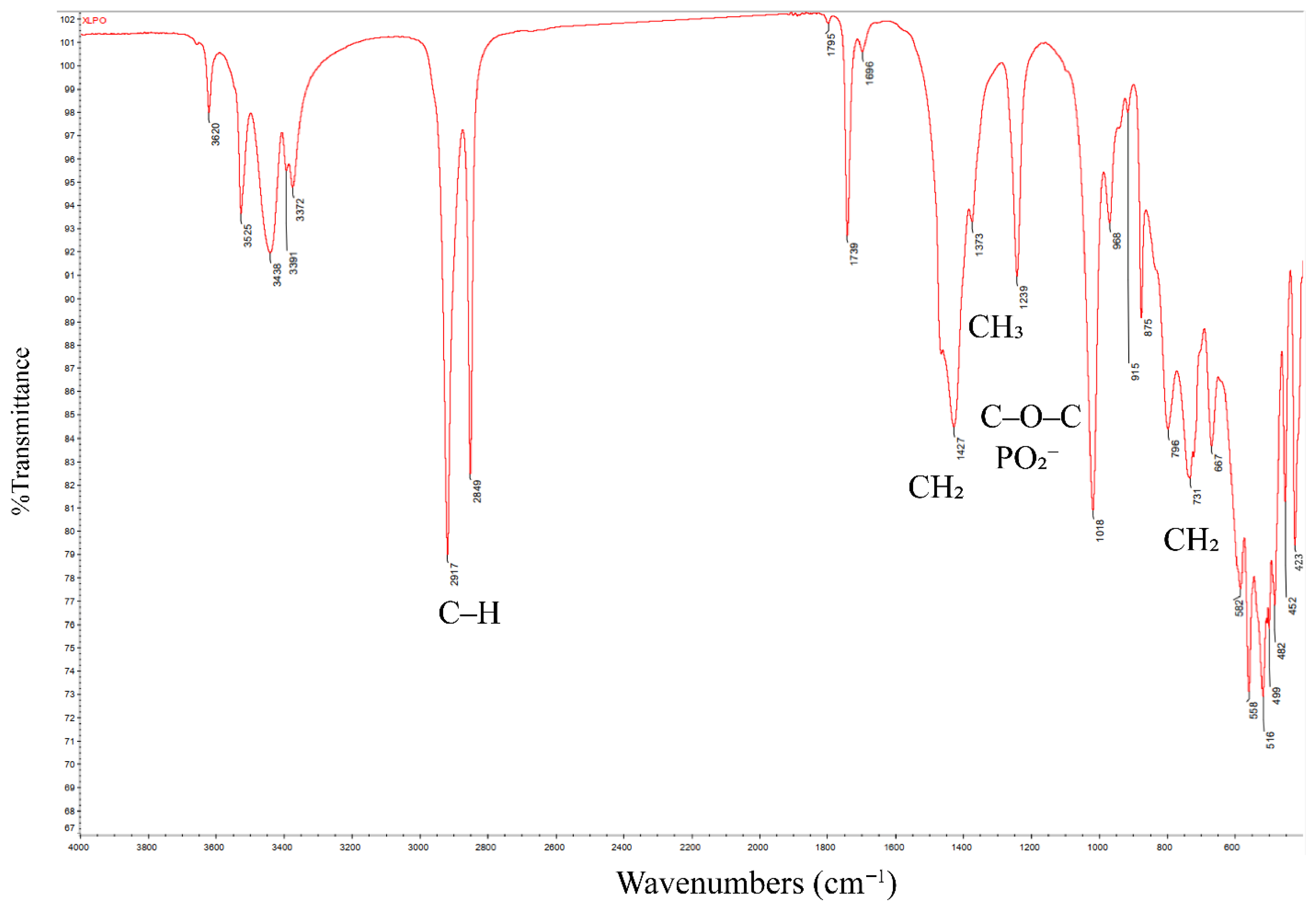XLPO | 2920 | C–H asymmetric stretching (CH2, CH3) |