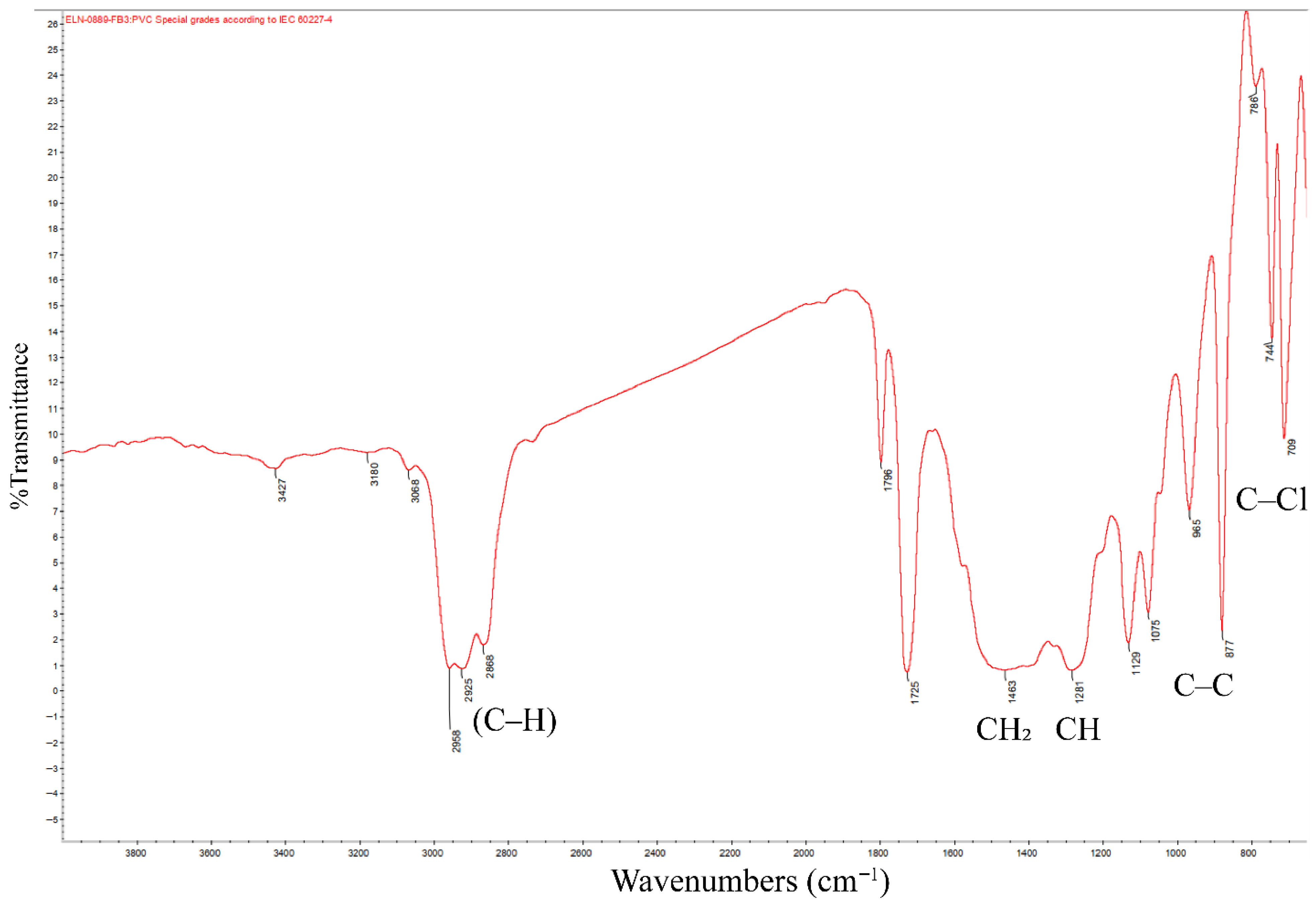 - CH2 bending: ~1430 cm−1 (lower than XLPE due to Cl substitution)