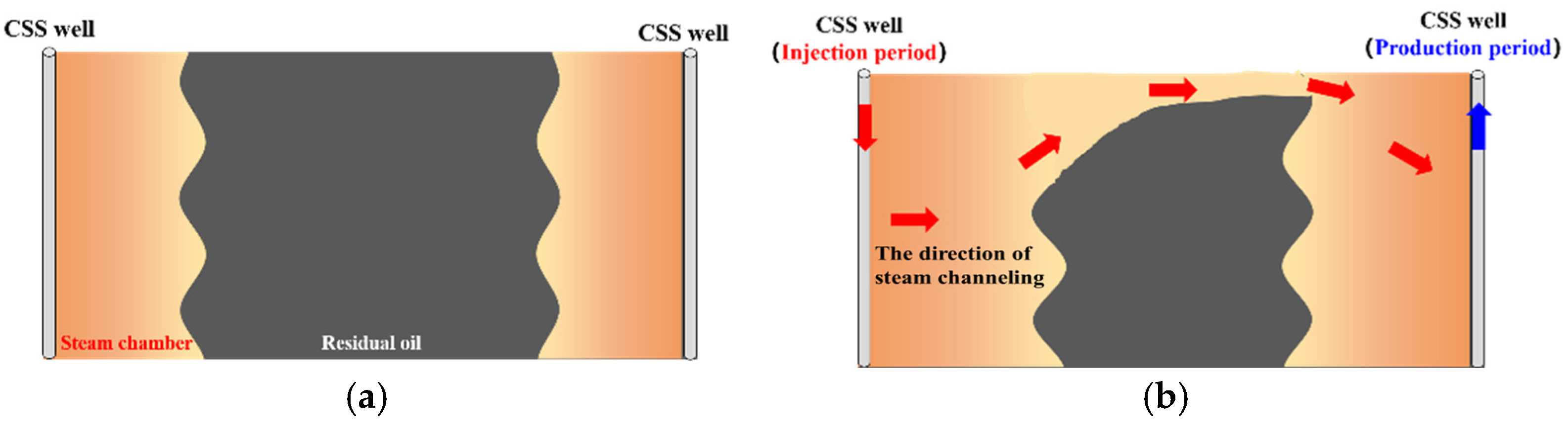 - Sun, L.X. Xinqian 45 block steam channeling characteristics and genetic analysis of heavy oil steam stimulation. Sichuan Univ. Arts Sci. J. 2012, 5, 54–58. [Google Scholar]