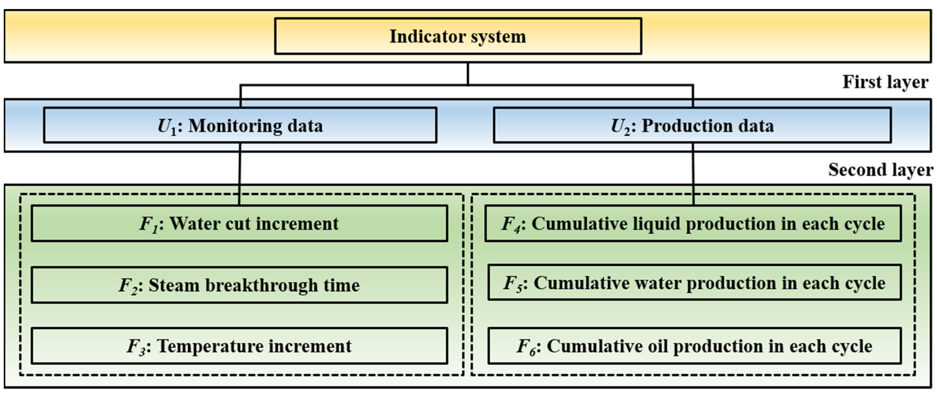 F1,F2,…,F6 | The indicators of the second layer |