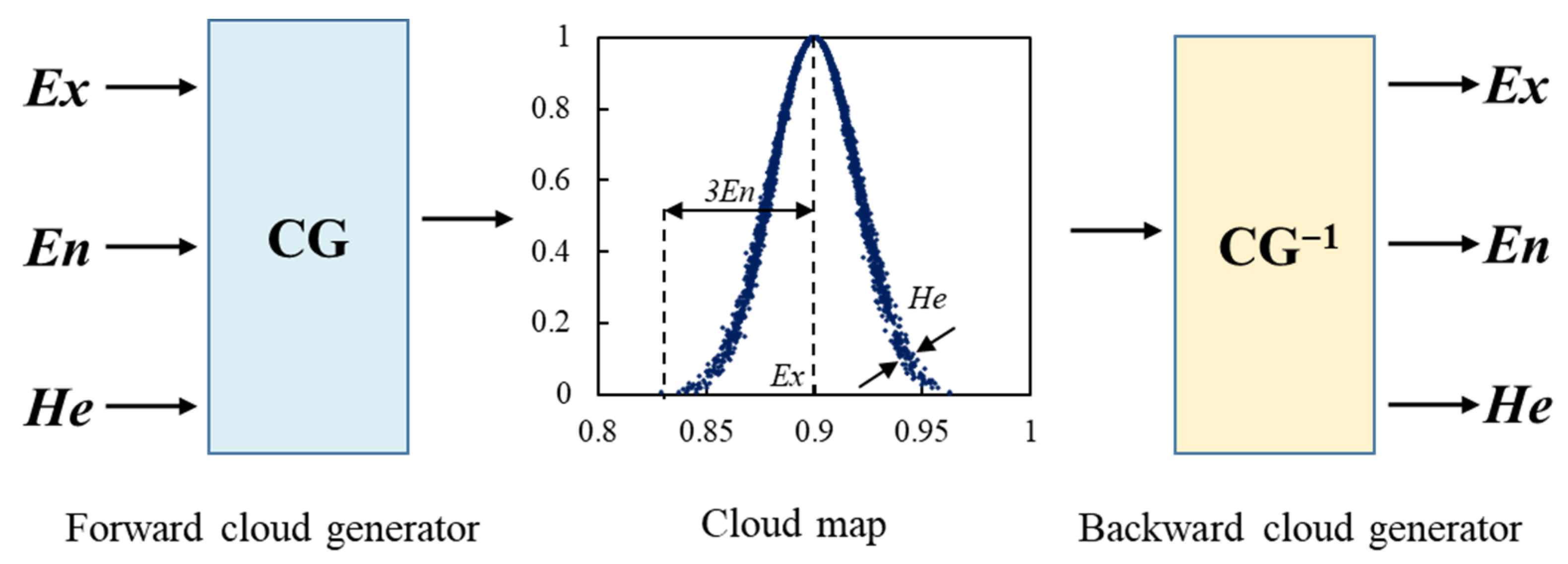 Ex, En, He | The cloud parameters of the comprehensive evaluation cloud |