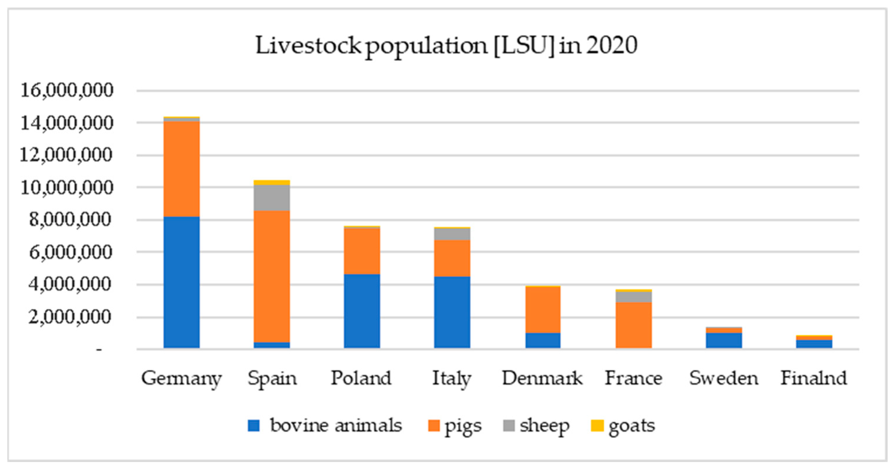 Country | Cattle [LSU] | Number of Cowsheds | Pigs [LSU] | Number of Piggeries | Goats [Units] | Number of Goat Sheds |
