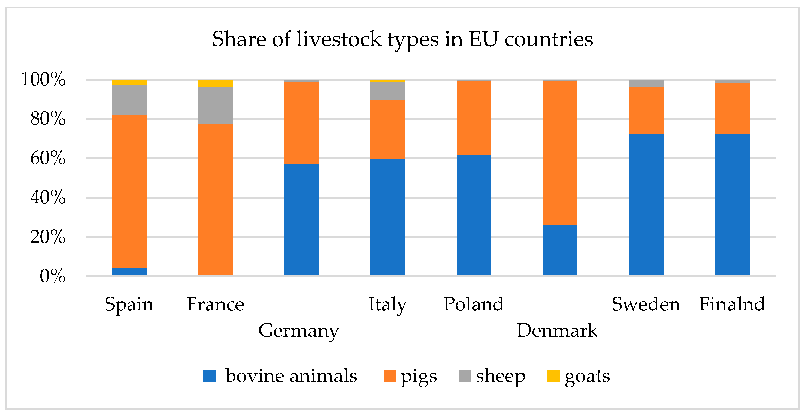 Country | Cattle | Pigs | Goats | Cattle | Pigs | Goats |