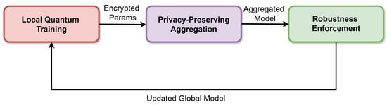 where is a feature vector and denotes a binary class label (0: normal; 1: malicious). The global federated quantum model is represented by , where denotes the model parameters.