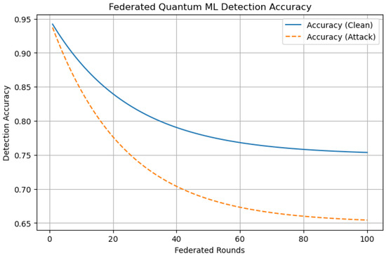 where denotes the federated quantum classifier parameterized by , is the true label associated with , and is the binary cross-entropy loss function. This threat formulation enables a robust evaluation of the proposed FQML framework under worst-case data-poisoning and model-evasion scenarios.