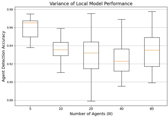 | Number of Agents N | 10–80 | Size of the federated learning network (number of clients/participants). |