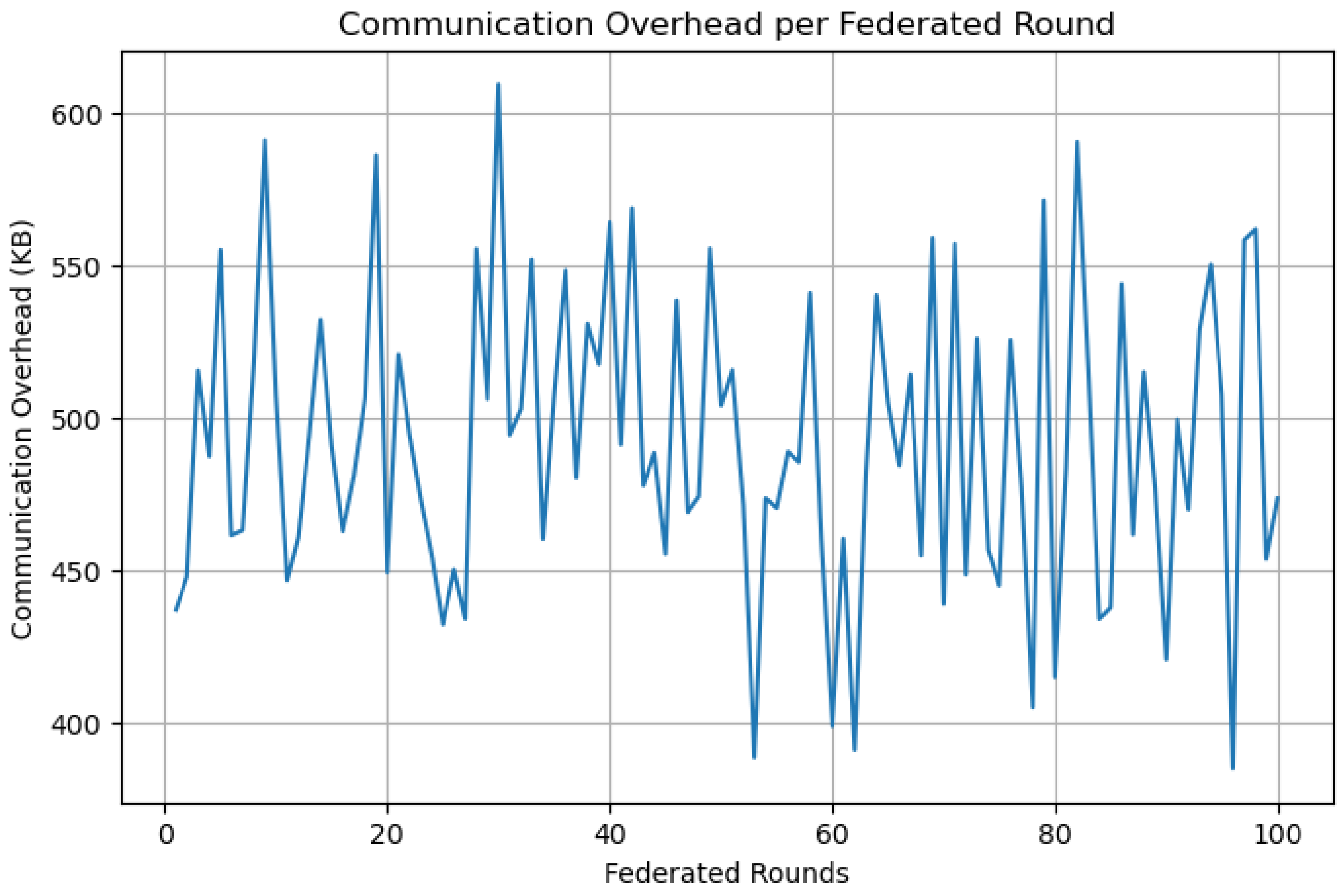 Low communication overhead averaging approximately 500 KB per federated round.