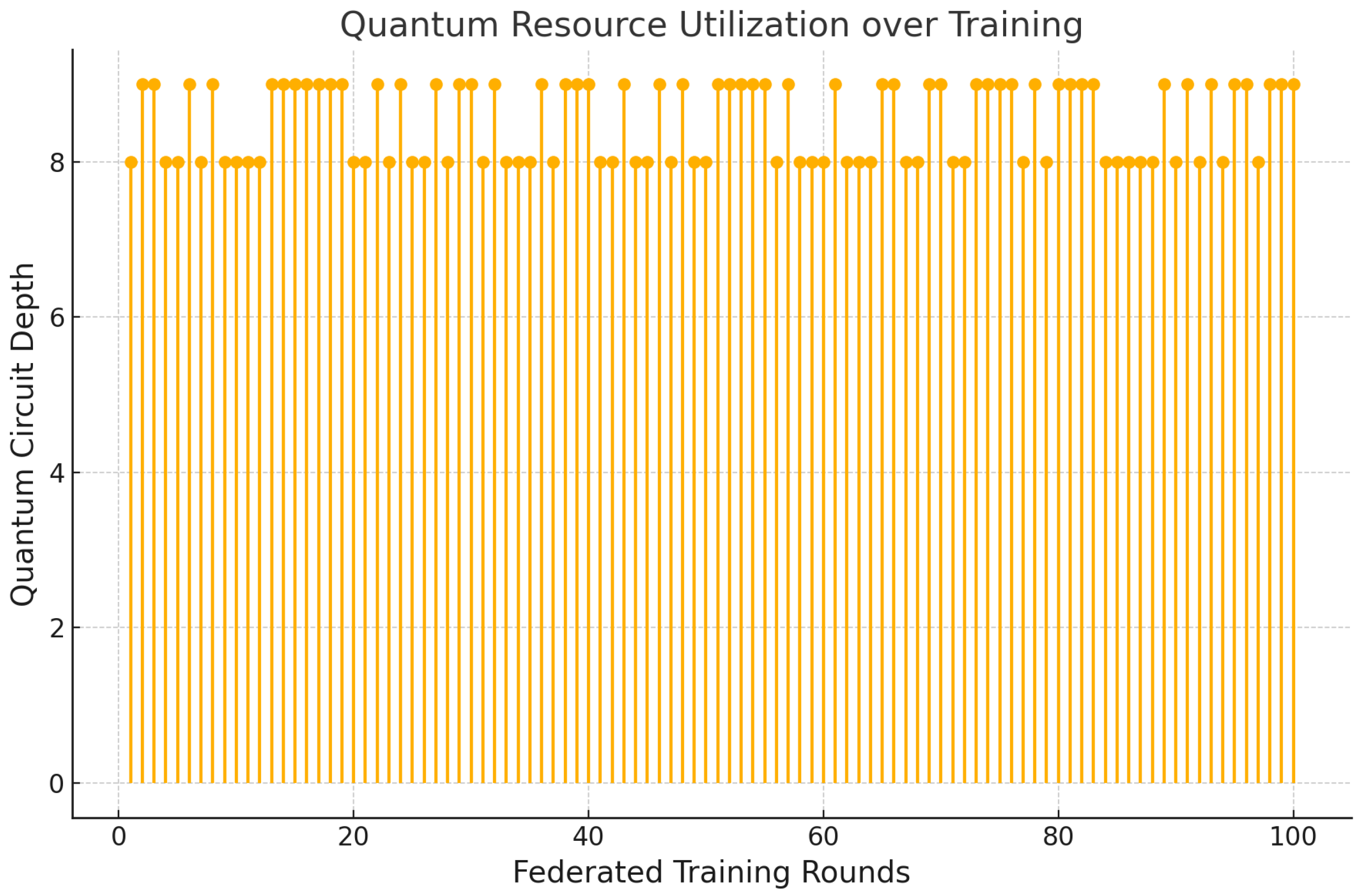 Figure 14, the FQML framework demonstrates accelerated convergence and reduced communication overhead, even as the number of agents scales, all while adhering to circuit depth constraints compatible with near-term quantum devices.