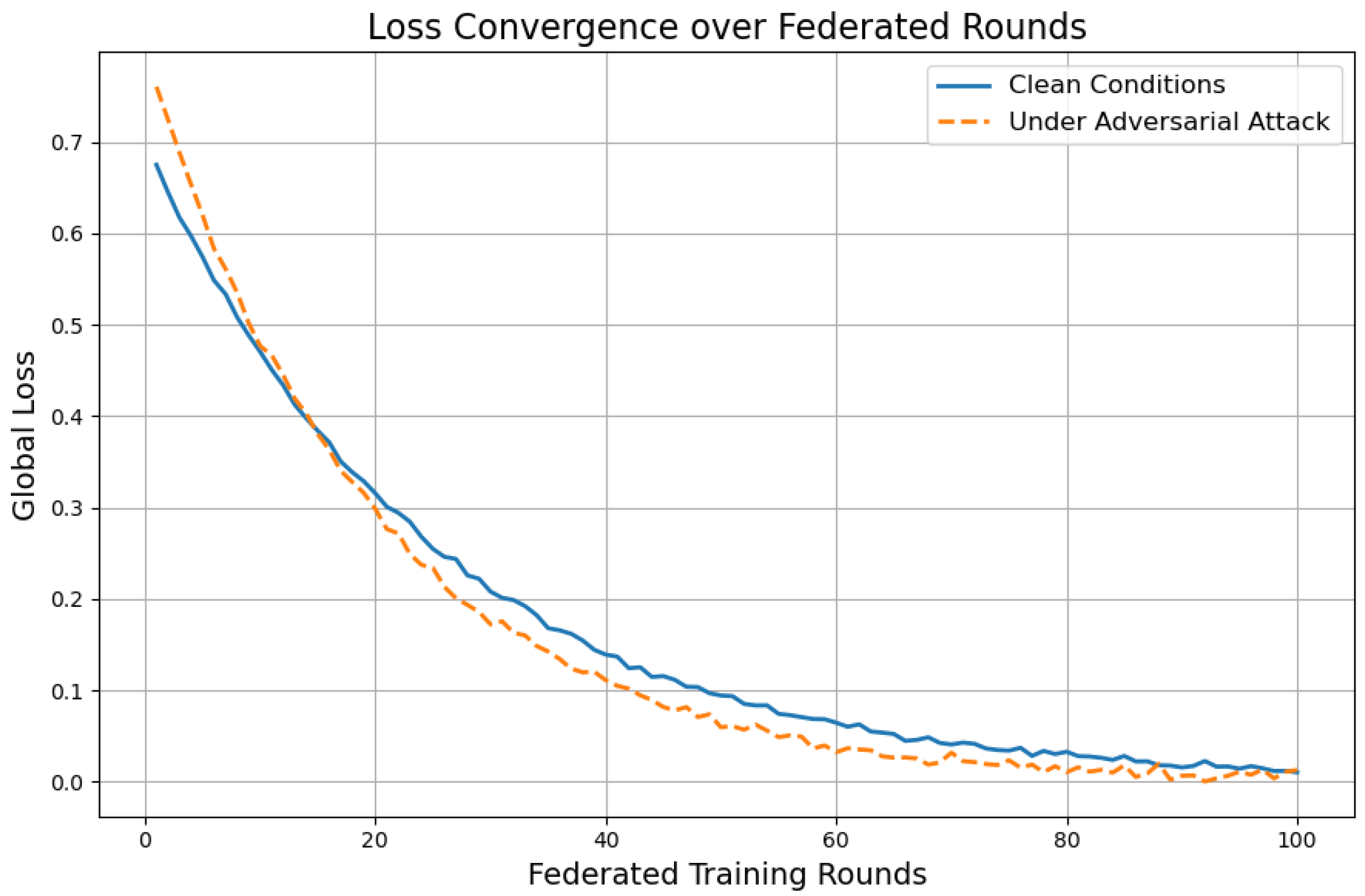 Figure 12 illustrate that the framework consistently outperforms classical FL and centralized quantum baselines when subjected to data-poisoning and Byzantine attacks. This resilience is driven by a combination of trimmed mean aggregation and adversarial-aware loss modeling, coupled with the intrinsic expressive power of PQCs. Notably,